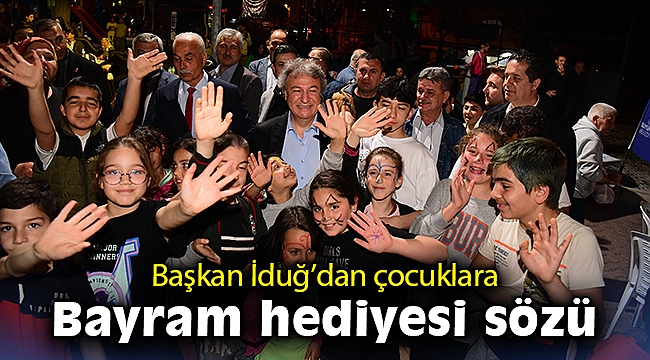 Çocuklar ve gençlerle bol bol sohbet eden Başkan İduğ, Altındağ Serintepe Mahallesi Muhtarı Latif Tek ile birlikte sahneye çıkarak, Bornova için gece gündüz çalıştıklarını ve çalışmaya da devam edeceklerini söyledi. Başkan İduğ, çocuklara bayram hediyesi sözü de verdi. Muhtar Latif Tek aracılığıyla oyuncaklarını bayram öncesinde alabileceklerini duyan çocukların mutluluğu, ailelerini de sevindirdi.
