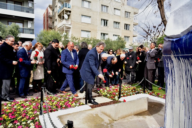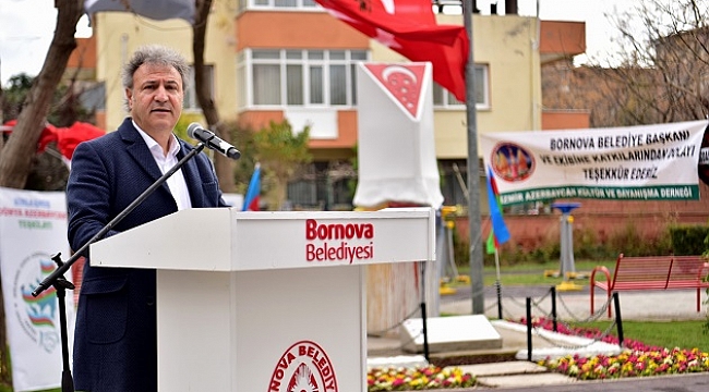 Bornova Belediyesi'nin Karacaoğlan Mahallesi'ndeki Azerbaycan Dostluk Parkı'nda düzenlenen anma
