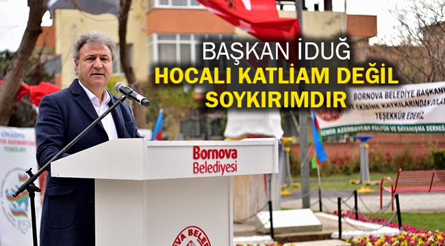 Anma etiknliğine Bornova Kaymakamı Fatih Genel, Azeri derneklerinin ve siyasi partilerin temsilcileri ve vatandaşların katılımıyla gerçekleşti. Tören, Hocalı'da 1992 yılında Ermeniler tarafından yapılan katliamın kurbanları için saygı duruşu ile başladı. Saygı duruşunun ardından hep bir ağızdan Azerbaycan Milli Marşı ile İstiklal Marşı okundu.