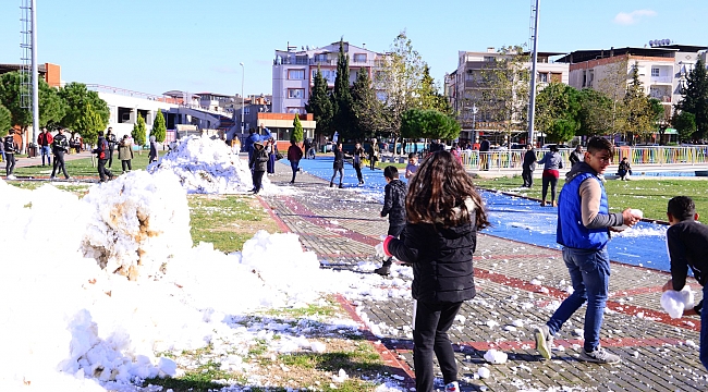 Çocukların mutlu olması için çaba gösterdiklerini kaydeden Başkan Karakayalı, “Geleceğimiz olan çocuklar, bizim için çok değerli. Onlar için ne yapsak azdır. İklim koşullarından dolayı, ilçemizin merkezine kar yağmıyor. Biz de çocuklarımızın bu eğlenceden mahrum kalmasını istemedik. Yüksek kesimlerinden getirdiğimiz kar ile çocuklarımızı bir nebze de olsa mutlu etmek istedik” diye konuştu.