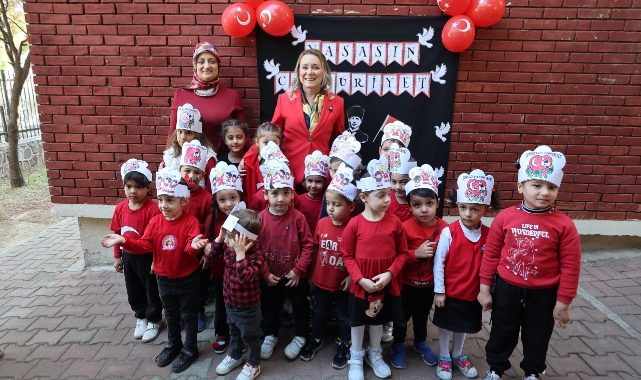 Konak Belediyesi’nin 3-5 yaş grubuna ücretsiz okul öncesi eğitim desteği verdiği Mutlu Çocuklar Oyun Evleri, 29 Ekim Cumhuriyet Bayramı dolayısıyla düzenlenen coşkulu kutlamalara ev sahipliği yaptı. Konak Belediye Başkanı Nilüfer Çınarlı Mutlu, Ballıkuyu Semt Merkezi’nde bir araya geldiği miniklerin Cumhuriyet Bayramı’nı kutlayarak coşkularına ortak oldu.