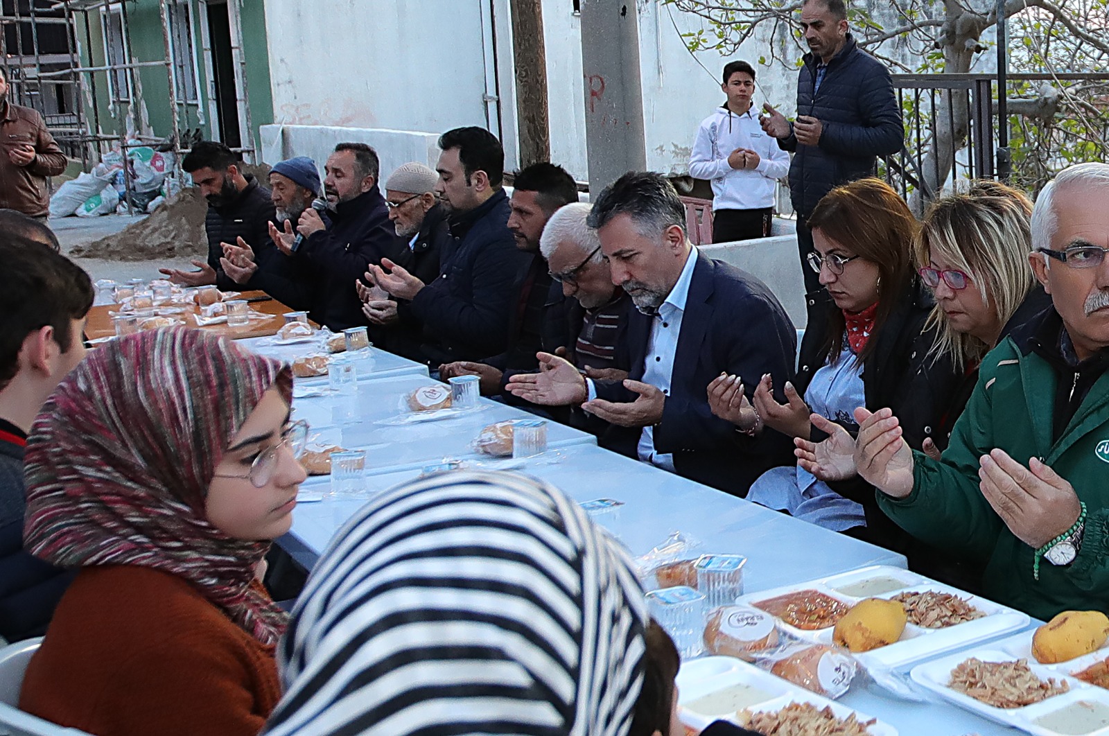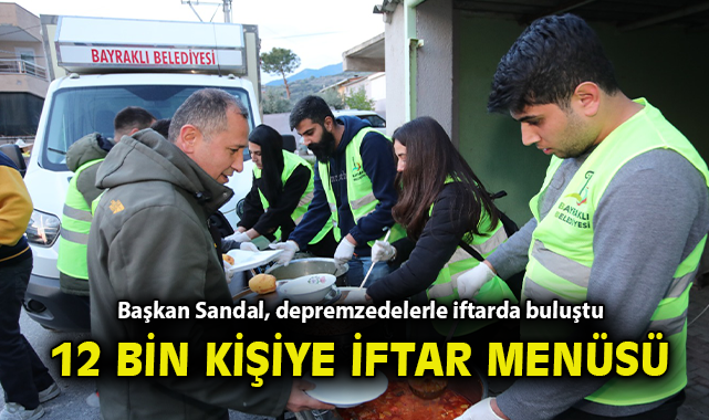 Doğançay Mahallesi’nde düzenlenen iftar yemeğine Bayraklı Belediye Başkanı Serdar Sandal, CHP Bayraklı İlçe Başkanı Didem Gültekin, Muhtar Arzu Nisan ve Kahramanmaraş merkezli meydana gelen deprem felaketinden etkilenerek Bayraklı’ya yerleşen depremzede vatandaşlar katıldı. Dualar eşliğinde oruçlar açıldı. Depremzedelerin talep ve önerilerini de dinleyen Başkan Sandal, bolluk, bereket ve dayanışma ayı Ramazan’ın hayırlara vesile olmasını dileyerek, “Bu mübarek ayda iftar soframızı paylaşmanın huzurunu yaşıyoruz. Oruçlarınız ve dualarınız kabul olsun” dedi.12 BİN KİŞİYE İFTAR MENÜSÜÖte yandan ihtiyaç sahibi ailelere desteklerini her alanda sürdüren Bayraklı Belediyesi, Ramazan ayında da binlerce aile ile sofrasını paylaşıyor. 3 çeşit yemekten oluşan iftar paketleri, Ramazan ayı boyunca binlerce aileye ulaştırılırken ayrıca dar gelirli ailelere erzak kolilerinin dağıtımına da devam ediliyor. Titizlikle belirlenen ihtiyaç sahibi ailelere bu kapsamda Ramazan ayı boyunca toplam 12 bin öğün iftar menüsü dağıtılıyor.