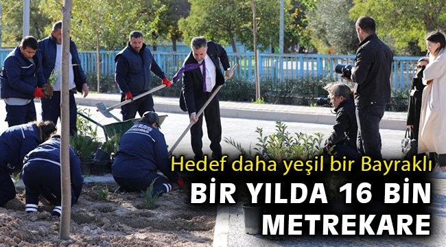BİR YILDA 16 BİN METREKARE YEŞİL ALANİlçe genelindeki park, yeşil alan ve sosyal donatı alanı oranını artırmak için çalışmalarını sürdüren Bayraklı Belediyesi, pandemi, sel ve depremin etkilerine rağmen son bir yılda 5 yeni çocuk parkını kullanıma açtı, 23 parkın oyun grupları da baştan sona yenilendi. Yıl içinde 16 bin metrekare yeni yeşil alan kazandırıldı. İlçe genelinde binlerce fidan ve mevsimlik çiçek dikildi. Ayrıca park zeminlerine 3 bin metrekare kauçuk döşendi. İlçedeki çeşitli parklara 92 adet de spor aleti yerleştirildi. Park ve Bahçeler Müdürlüğü tarafından sürdürülen çalışmalar, vatandaşlar tarafından da memnuniyetle karşılandı. “YARINLARA DAHA GÜZEL BAYRAKLI”Bayraklı Belediye Başkanı Serdar Sandal, "Daha yeşil bir ilçe yaratmak ve yarınlara daha güzel bir Bayraklı bırakmak amacıyla çalışmalarımızı sürdürüyoruz. Hedefimiz daha yeşil bir Bayraklı. Modern kent mobilyaları, yaya ve bisiklet yolları ile tüm parklarımızda halkımızın rahat nefes almasını, çocuklarımızın huzurla oynamasını temenni ediyoruz” dedi.