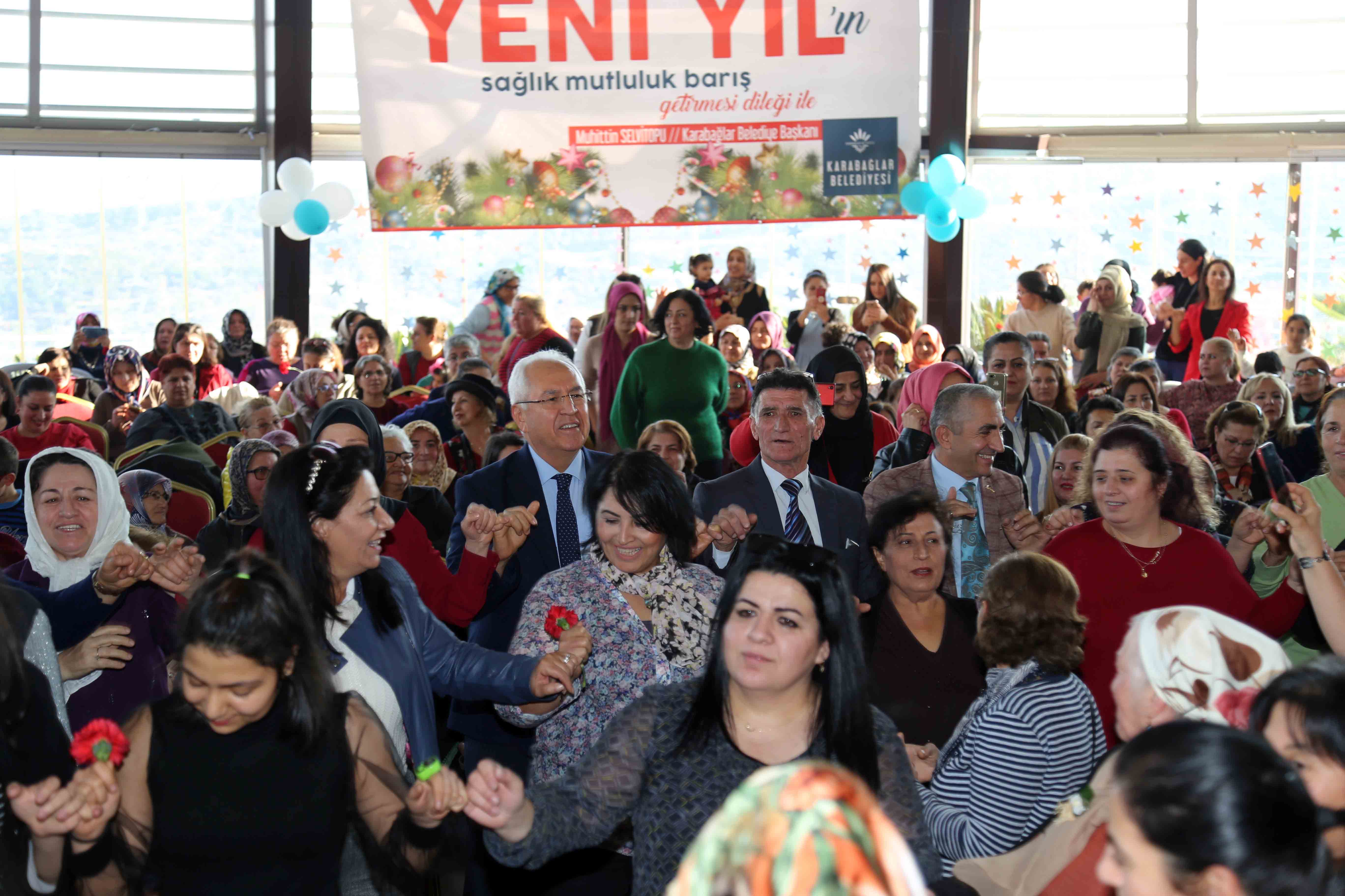 Yeni yıl kutlamasına, salonu dolduran kursiyer kadınların yanı sıra, meclis üyeleri, muhtarlar ve bürokratlar da katıldı. Etkinliğin başında Eşi Fügen Selvitopu'yla birlikte kursiyer kadınlara kırmızı karanfil dağıtan Başkan Selvitopu, 2020 yılının ülkemize barış, hoşgörü, sevgi ve bolluk getirmesini diledi. Ülkede yaşayan yurttaşların bunları hak ettiğini vurgulayan Başkan Selvitopu, “Biliyoruz ki sizler, eşleriniz, çocuklarınızla birlikte zorlu bir yaşam mücadelesi veriyorsunuz. Bizler de yeni yılda sizlerle birlikte olacak, sıkıntı ve sevinçleri paylaşmaya devam edeceğiz. Dertlerin, sıkıntıların azaltılmasının tek yolu çok çalışmak. Onun için göreve geldiğimizde 4 olan semt merkezlerinin sayısını 16’ya çıkardık. Şimdi hedefimiz bunları 58 mahallemizin tamamına yaymak” dedi.