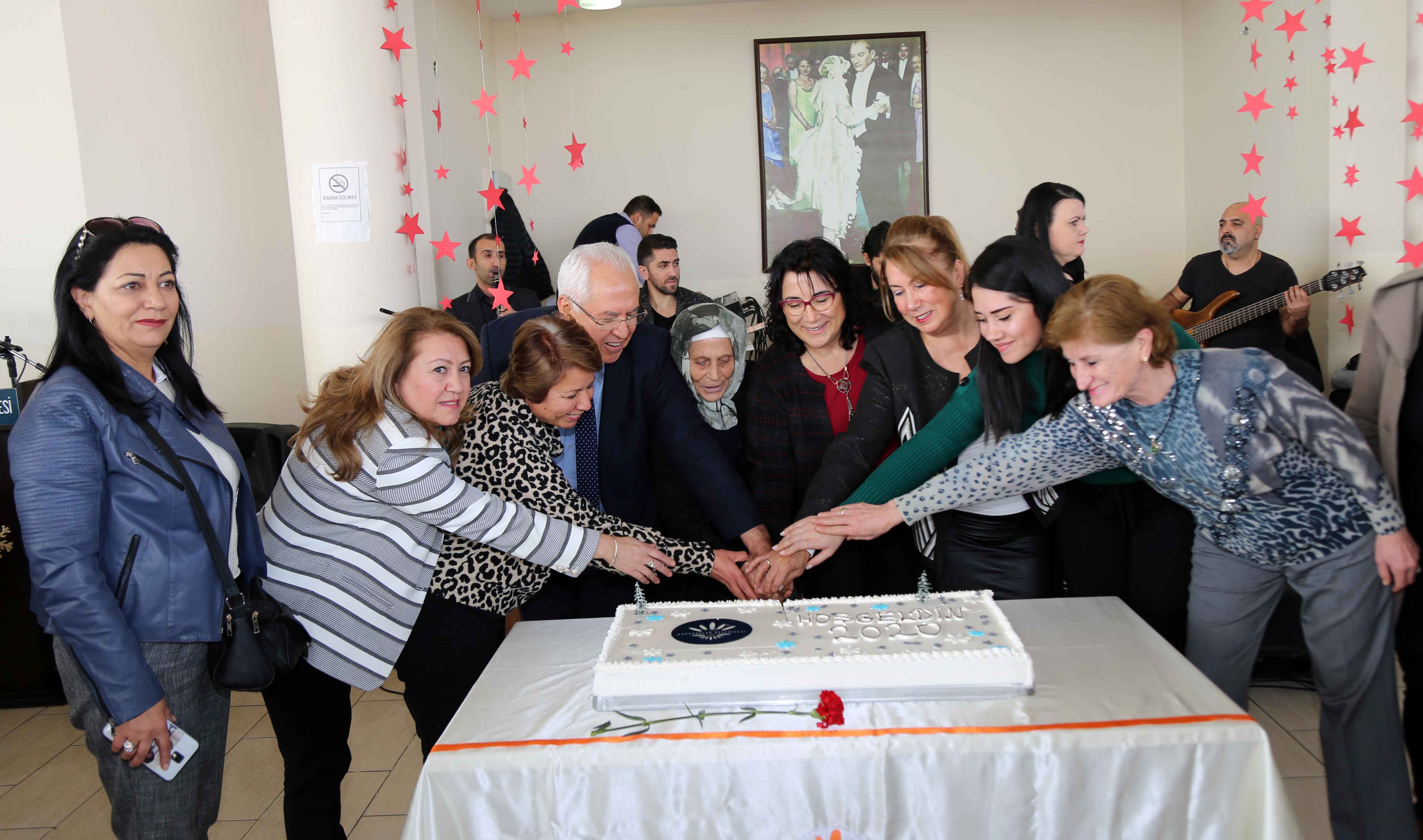 Konuşmasının ardından Başkan Selvitopu, semt merkezi kursiyerlerinden Sezin Akkuş’la bir süre dans etti. Daha sonra halaya katılan Başkan Selvitopu ve Eşi Fügen Selvitopu, yeni yıl pastasını da kursiyerler ve meclis üyeleriyle birlikte kesti.