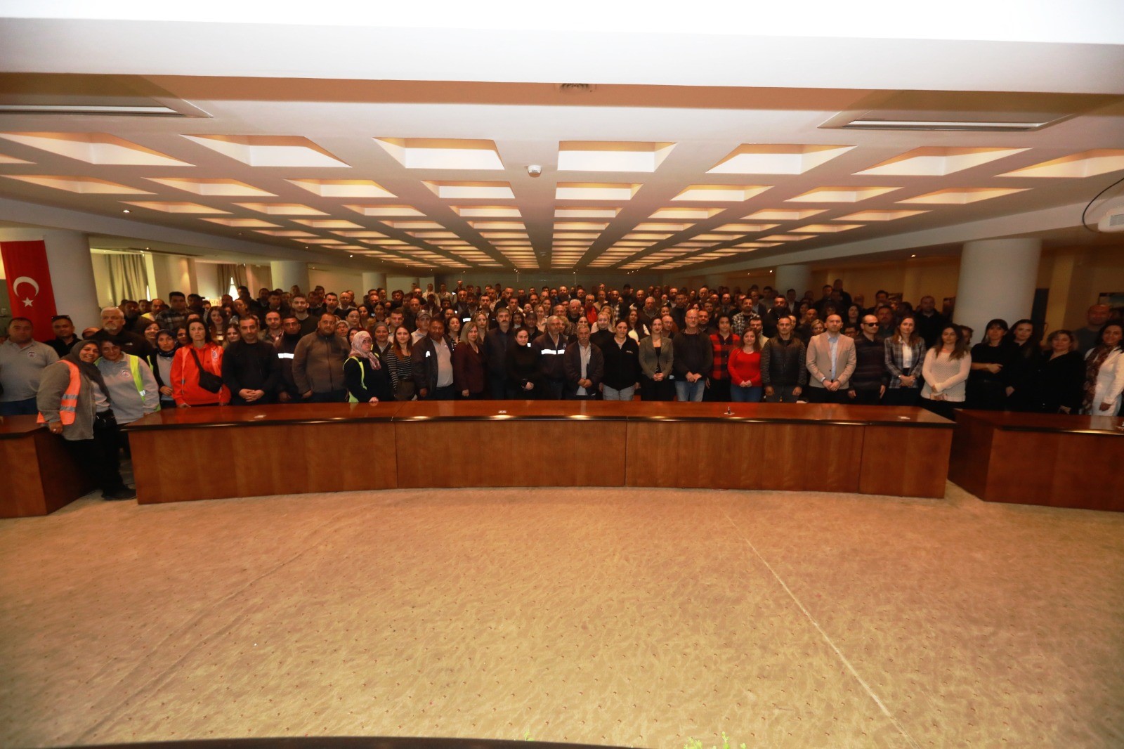 Ahmet Taner Kışlalı Salonu’nda belediye emekçileri ile bir araya gelen Sengel, yılbaşı öncesi çalışanların kartlarına yatırılacak tutar ile Mehmetçikle dayanışma ağını büyüten kent esnafına teşekkür etti.