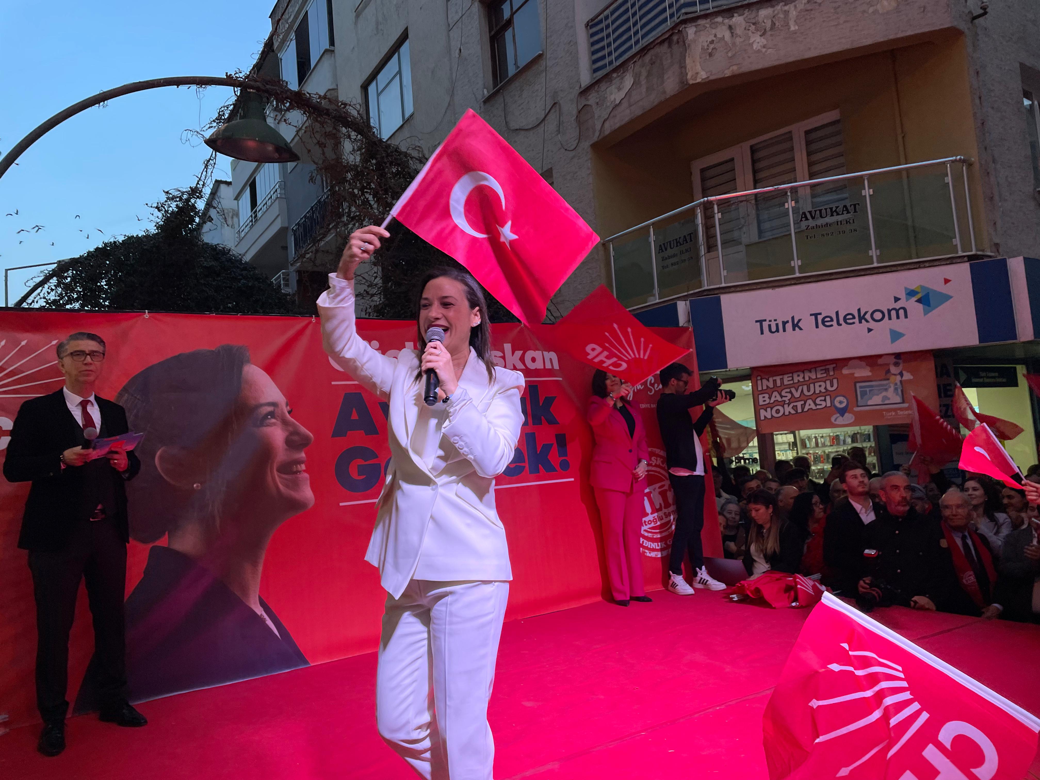 Selçuk Belediye Başkanı ve yeni dönem Belediye Başkan Adayı Filiz Ceritoğlu Sengel sözlerine dertleşecek yerini belirterek başlarken, "Burada kimler var biliyor musunuz? Burada kimler var? Burada Cumhuriyet sevdalıları var. Burada Selçuk gönüllüleri var. Burada baba ocağının ne demek olduğunu bilenler var. Hoş geldiniz. Sefalar getirdiniz efendim. CHP için ne kadar kıymetliyiz biliyor musunuz Selçuk... 38 bin nüfusumuz var ama karıncanın da kardeşi var ya işte buradalar. Cumhuriyet Halk Partisi'nin ta kendisi. Teşekkür ediyoruz geldikleri için. Günlerden beri alandayım sesim biraz çatladı. Ama hiç önemli değil. 24 gün sesim helal olsun hepinize. Ufak ufak dertleşti. Duymak istemeyen kulaklara bir şeyler fısıldayacağız. Görmek istemeyen gözlere bir şeyler göstereceğiz. Bir şeyleri hatırlatacağız. Bir şeyler için 'ama yok artık' diyeceğiz. Çünkü Efes Selçuk halkı şunu bilir; Mesela emekçilerim şunu bilir. Ben bir şeyi söyleyeceksem mikrofonda söylerim. Hiç kapalı kapılar arkasında, ne dedikoduyla uğraşırım, ne de karalamayla. Gerçekleri çıkarım sahnede anlatırım. Görmeyen gözlere göstereceğiz. Hatırlanmayan şeyleri hatırlatacağız. Biraz bellekleri tazeleyeceğiz diyelim. Bu bellekleri tazelerken genel itibariyle 2019'dan beri bilirsiniz en azından belediye adayı olarak sahneye çıktığında beri biz hiçbir şekilde kimseyi bir şey yapmadık. Kalkıp da eleştirmem, onlar üzerine konuşmam vesaire... Ha tarzım ne? Hem de daha da önemli bir şey var. Siyaset ekip kaidesine de uygun bulmuyorum. Çünkü siyaset ya beni kendisine benzetecekti, ya da ben siyaseti kendime benzetecektim. Kendime benzetmeyi başarabildiğim için hala karşınızda onurla Cumhuriyet Halk Partisi bayrağı altında duruyorum işte. O yüzden hatırlamayanlar varsa hatırlayacaklar. Bellek'ten tazelenecek. 2019 Efes Selçuk'un en yüksek oyunu alırken sizlerle birlikte ve sizlerin sayesinde belediye başkanı olduk. Kapıdan içeriye girdik ve biz borç batağıyla karşılaştık. O borç batağında karşılaştığımızda 8 tane Cumhuriyet Halk Partili Meclis Üyesinin Grup Başkan Vekili ve grup sözcüsü olarak Cumhuriyet Halk Partisi'ni savunmak adına ve yanlış gidenlere dur demek adına bütün yükü aldık omuzlarımıza. Elimizden geldiğince çaba sarf ettik. Neye çaba sarf ettik biliyor musunuz? Adalet Kalkınma Partisi'nin ekonomik öngörüsüzlüğüyle şu anda da mevcut olan ve de hala daha yine adayı olan emeklilik zamanımı doldurayım diyen Zeynel Hoca'nın ekonomik öngörüsüzlüğü sonucunda getirmiş olduğu belediyeye getirmiş olduğu durumla karşı karşıyaydık. İşte biz bununla mücadele ettik. Bahsedeceğiz bazı şeylerden. Hiç utanmadan sıkılmadan gururla çünkü neyle mücadele ettiğimizi 5 yıl boyunca biz biliyoruz. Bahsedeceğiz borçlardan. Bahsedeceğiz o borçlardan sonra belediyeyi nasıl hayata, ayağa kaldırdığımızdan. Turizm çok iyi gidiyorken 201-2019 arasında emekçinin paraları nasıl verilmedi? Bahsedeceğiz nasıl verilmedi? Nasıl Meryem Ana ve Efesaltı Otoparkları zamanı dolduğu zaman ihaleye çıkarıldı ve üzerine para verildi. Hükümet belediye el ele derken emekler nasıl hükümete baktı edeceğiz. Yok öyle! Hepimiz bahsedeceğiz. Diyecek ki şurada bir kreşimiz vardı. Bunu nasıl sen verdin? Başka yerlere bunu anlat bize diye bahsedeceğiz. Edep Selçuk halkına ait olan gelirler Şirince Otoparkı nasıl verildi ve belediyenin elinden çıkartıldı? Bahsedeceğiz bunlardan. Korkmadan bahsedeceğiz. Anlatacağız. Daha neler neler anlatacağız bu mikrofonlarda. Bunu bilin; Şimdi kalkmış diyorlar 5 yıl boyunca ne yapıldı? 5 yıl boyunca ne yapıldı biliyor musunuz? O pandemide herkes evin içerisinde öleceğim korkusu içerisindeyken belediyenin bütün çalışanları sokaklardaydı. O 5 yıl içerisinde ne yapıldı biliyor musunuz? O 5 yıl içerisinde ne yapıldı biliyor musunuz? Ekonomi felaket hale geldi ülkede. Çocuklar aç açına gitti okullara. Öğlen yemekleri ellerinden alın ama Efes Selçuk halkı çocuğuna sahip çıkmayı belediye çocuğuna sahip çıkmayı bildi. Gıda dayanışmasını evlere götürdü. Analar hazırladı çocuklarına, beslenme çantalarını koydular. Yoksa biz de bilirdik, nal Filiz Ceritoğlu Sengel ya da Selçuk Belediyesi yazmayı. Ama çocukları gururla Efes Selçuk halkı besledi. O 5 yıl boyunca ne yaptık biliyor musunuz? Ekmeğimizi bölüştük. O beş yıl boyunca ana düşen çocuklardan itibaren sosyal yardım ihtiyacı olan hamilelere çocukların gelişimi ana karnında başlar deyip onları beslemeyi düşündük. O 5 yılda ne yaptık biliyor musunuz? Taşımalı eğitim dedikleri köyleri mahalleye döndürdükten sonra merkeze gelen çocuklar eğitim hakkından olmasınlar diye çocukları rencide etmeden bizler taşıdık. Siz taşıdınız. O 5 yıl boyunca ne yaptık biz biliyor musunuz? Belediyemizin borçlarını ödedik. Kasada paramızı tuttuk. Dedik ki yapacağımız daha çok iş var. O beş yıl boyunca emekçimi bir gün olsun mağdur etmedim. Bir gün olsun da ekonomiye asla ezdirmedim. O 5 yıl boyunca ne yaptık biliyor musunuz? Deprem olduğunda hep beraber toplandık deprem bölgesinde yolda bizim götürdüğümüz malzemeler ziyan olmasın diye Hatay'a götürdük, Malatya'ya götürdük. Aş götürdük, ekmek götürdük, battaniye götürdük. Çocuklar göçük altındayken bina yapmayı düşünemedik kusura bakmasınlar. Bina yapmak demişken... Biz eğer bir bana yaparsak Gazi Mustafa Kemal Atatürk'ün hayali olan cumhuriyet köylerinden feyz olarak Türkiye bildiği toprak okulunu yaptık. Işte orada. Ama anlamazlar. Neden! Atatürkçü düşünceden, cumhuriyetten, laiklikten, bu ülkenin kurtuluşunun eğitimden, topraktan, köylüden üretmekten geçtiğini anlayamazlar, anlayamayacaklar!" dedi.