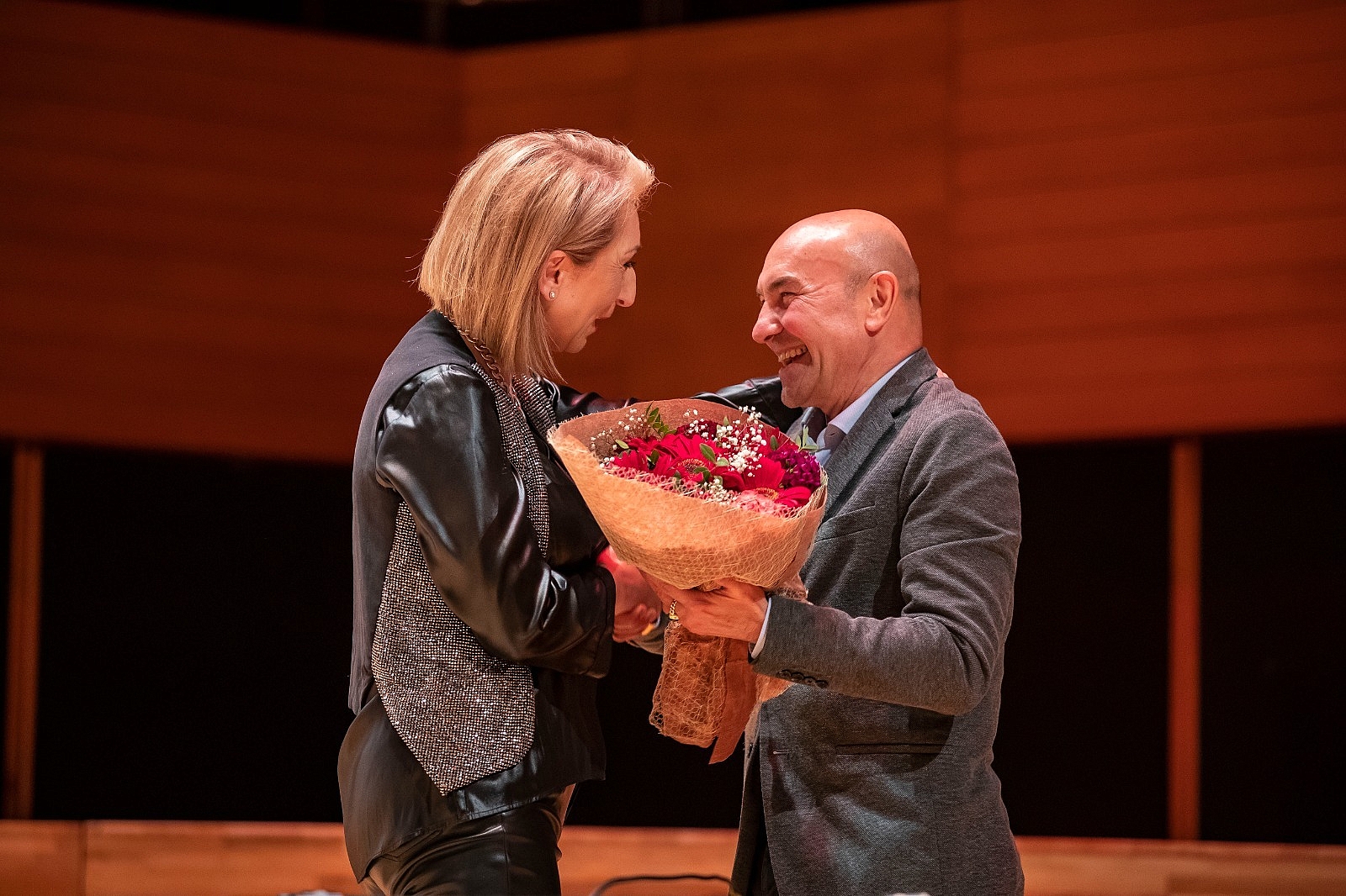 Başkanı Tunç Soyer, konser öncesinde kulisi ziyaret ederek sanatçılarla sohbet etti. Daha sonra programın açılış konuşmasını yapan Başkan Soyer, “Seferihisar Belediye Başkanı olduğum yıllarda Sayın Bülent Tanık Çankaya Belediye Başkanıydı. Hayranlıkla takip ederdim. Çok ilham aldım, çok şey öğrendim ondan” diye konuştu.
