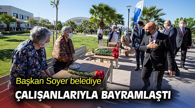 İzmir Büyükşehir Belediye Başkanı Tunç Soyer, bayram öncesi belediyenin farklı birimlerinde görev yapan personeli ziyaret etti. Güne İnciraltı'ndaki ESHOT Garajı'nda başlayan Soyer; Park ve Bahçeler Dairesi Başkanlığı, İZUM, Sosyal Yaşam Kampüsü, Sosyal Hizmetler Dairesi Başkanlığı, Konak Tünel İşletmesi, Halkapınar Atık Transfer İstasyonu, İZBETON, Fen İşleri Şantiyesi, Eşrefpaşa Hastanesi, Mezarlıklar Dairesi Başkanlığı, İtfaiye, Zabıta ve ilaçlama personelini ziyaret ederek bayramlaştı. Başkan Soyer’e İzmir Büyükşehir Belediyesi Genel Sekreteri Dr. Buğra Gökçe de eşlik etti.