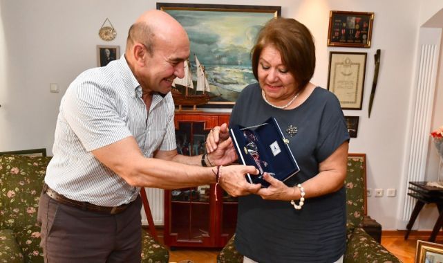 İzmir Büyükşehir Belediye Başkanı Tunç Soyer İzmir’in kurtuluşunun 100. yılı anısına kente kazandıracağı anı evi için bağış yapan ressam Ayla Erdur’u Karşıyaka'daki evinde ziyaret etti.