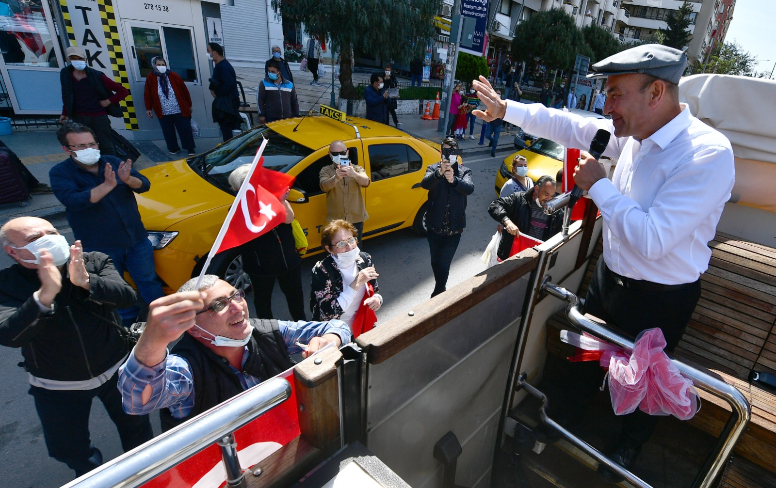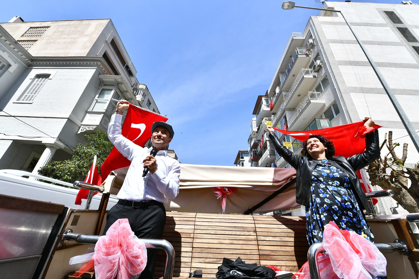 İzmir Büyükşehir Belediye Başkanı Tunç Soyer ve eşi Neptün Soyer 23 Nisan Ulusal Egemenlik ve Çocuk Bayramı’nda otobüsle şehrin sokaklarını dolaştı. Parklarda oynayan çocuklar, alışveriş yapmak için çıkan yurttaşlar ve balkonlarından kendilerini, Türk bayraklarının yanı sıra alkışlar eşliğinde coşkuyla karşılayan İzmirlilerin bayramını kutlayan Başkan Tunç Soyer, geçtiği güzergahta çalışanlara ve esnafa da seslenerek hayırlı işler diledi.