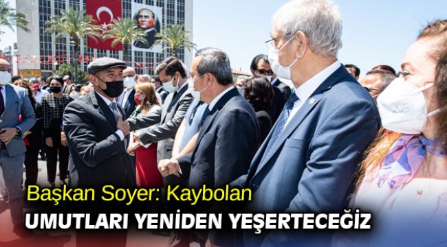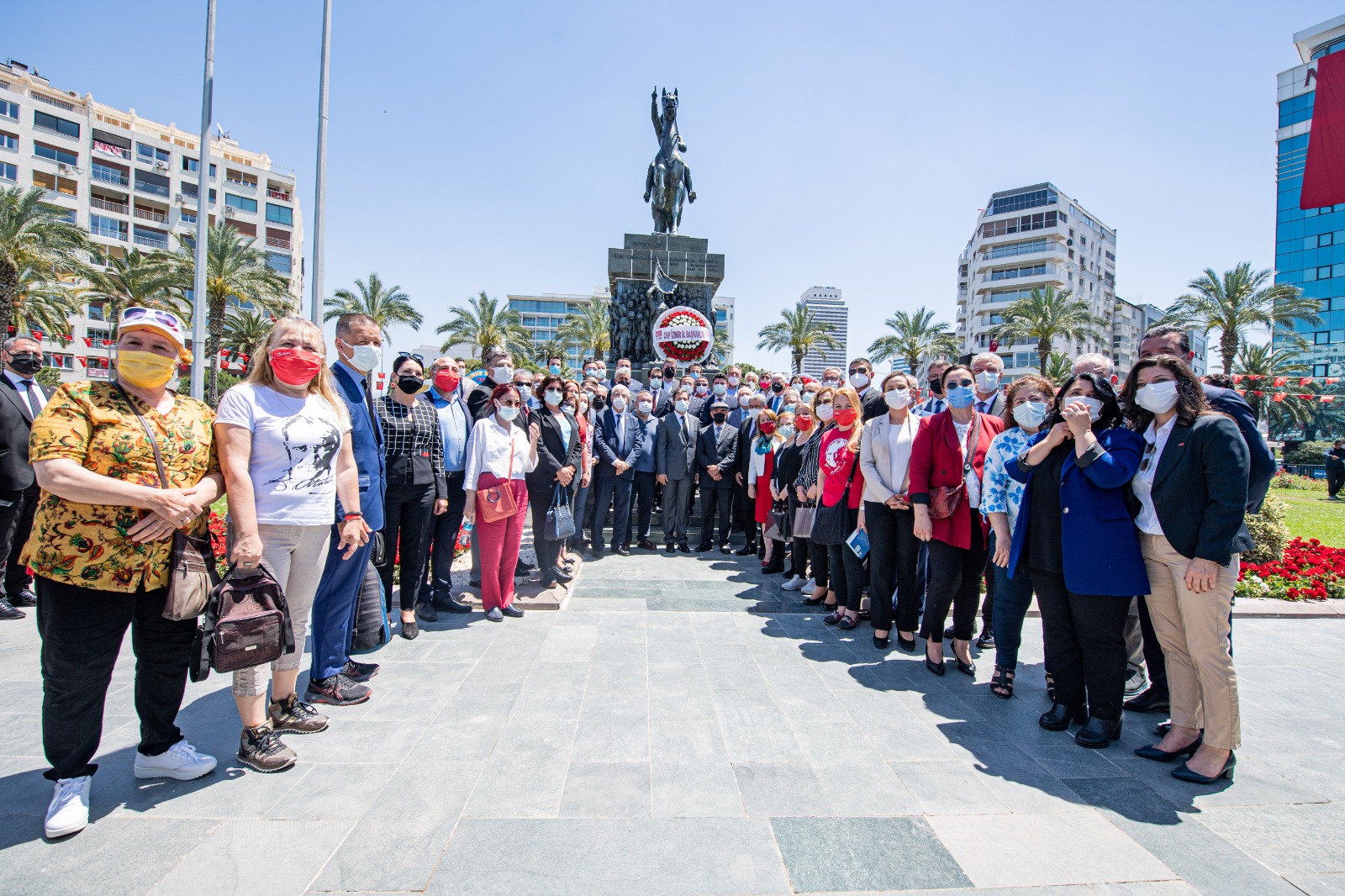 “Kendimize güveniyoruz”Asla umutsuzluğa kapılmayacaklarını ifade eden CHP İzmir İl Başkanı Deniz Yücel, “Mustafa Kemal Atatürk’ün bir sözü var; ‘Umutsuz durum yoktur, umutsuz insan vardır.’ Bakın belediye başkanlarımız özveriyle çalışıyorlar. Sorun çözüyorlar, milletin dertlerine derman oluyorlar. O yüzden asla umutsuzluğa kapılmak yok. Ülkeye huzuru, barışı, demokrasiyi, adaleti getirmek için toplumun umudu CHP'dir. Kimsenin ezilmediği, inanç, etnik köken ve yaşam tarzı nedeniyle kimsenin ötekileştirilmediği herkesin kardeşçe yaşadığı bir Türkiye için toplumun umudu Kemal Kılıçdaroğlu. Kendimize güveniyoruz. Gençlerimize güveniyoruz. Kadınlarımıza güveniyoruz. Demokrasi diye, adalet diye, eşitlik ve özgürlük diye haykıran milyonlara güveniyoruz.”“Cumhuriyeti demokrasiyle taçlandıracağız”İzmir Büyükşehir Belediye Başkanı Tunç Soyer de törende şunları söyledi: “19 Mayıs Mustafa Kemal Atatürk’ü Anma, Gençlik ve Spor Bayramımız kutlu olsun. Belki de buradan Mustafa Kemal Atatürk’ü anmanın en güzel yolu, kuruluşun ve kurtuluşun şehri İzmir’den ona bir selam ve söz göndermek olur. İzmir Büyükşehir Belediye Başkanı Tunç Soyer de törende şunları söyledi: “19 Mayıs Mustafa Kemal Atatürk’ü Anma, Gençlik ve Spor Bayramımız kutlu olsun. Belki de buradan Mustafa Kemal Atatürk’ü anmanın en güzel yolu, kuruluşun ve kurtuluşun şehri İzmir’den ona bir selam ve söz göndermek olur. Hepimiz Türkiye’de kaybolan umutları yeniden yeşerteceğimize, onların canı pahasına bize armağan ettikleri bu cennet vatana sahip çıkacağımıza, onların anısına kimseye saygısızlık ettirmeyeceğimize, hiçbir genç kardeşimizin işsiz kalmasına izin vermeyeceğimiz günleri yaratacağımıza ve ikinci yüzyılında kurduğu cumhuriyeti demokrasiyle taçlandıracağımıza söz veriyoruz. Bayramımız kutlu olsun.”