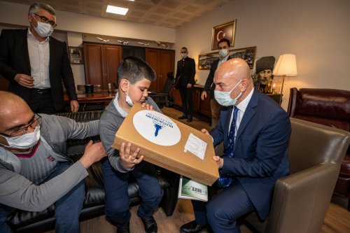 “İyi bir eğitim almasını istiyoruz”Bager'in babası Mehmet Çalışcı ise İzmir’e taşınmak istediklerini söyleyerek şöyle devam etti: “İzmir ülkemizin aydınlık yüzüdür. Bager İzmir'i çok seviyor” dedi. Çalışçı şöyle devam etti: “Bager oturuyor biraz dinleniyor, sonra piyanonun başına geçiyor. Sanki günlerce üzerinde çalıştığı bir parça varmış gibi rahatlıkla yapıyor. Ama tabi ne olursa olsun, ne kadar yetenekli olursa olsun ‘benim öncelikle çok çalışmam lazım’ diyor. Oğlumdur diye düşünmüyorum artık. Bir milletin değeri olarak ortaya çıksın istiyorum. Uluslararası bazda kendi vatanını, bayrağını dalgalandırsın gururla. Biz onu istiyoruz. İyi bir eğitim almasını istiyoruz.”Bager ziyaretin sonunda Başkan Soyer'e günlüklerinden oluşan kitabı, Başkan Soyer ise Bager'e bilgisayar armağan etti.Ziyarete Karşıyaka Belediye Başkanı Cemil Tugay ve İzmir Büyükşehir Belediyesi Genel Sekterer Yardımcısı Ertuğrul Tugay da katıldı.