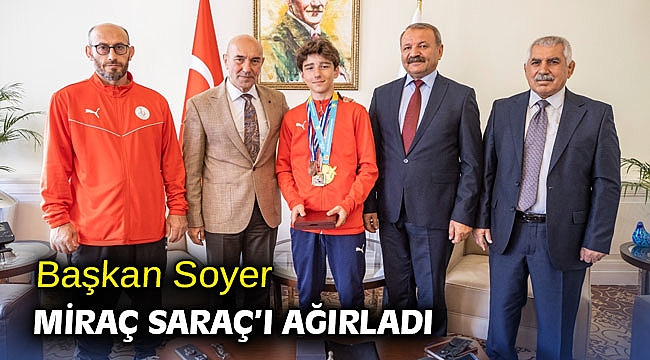 İzmir Büyükşehir Belediye Başkanı Tunç Soyer, 23-26 Eylül tarihleri arasında Romanya’da düzenlenen Gençler ve Yıldızlar Dünya Plaj Güreşi Şampiyonası’nda birinci olan 16 yaşındaki Miraç Saraç’ı ağırladı. Başkan Tunç Soyer Bayraklı Belediyesi Spor Kulübü adına mücadele eden Saraç’ı tebrik ederek, daha güzel başarılar elde edeceğine inandığını belirtti.