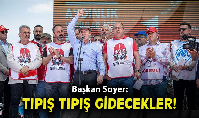 Çok az kaldıAlanda konuşan Başkan Tunç Soyer, “On yıllardır emeğin hakkının gasp edildiği, alın terinin yok sayıldığı, haklarımızın elinden alındığı bir düzen içinde yaşadık. İlk defa bu düzeni değiştirmeye çok yakınız. Çok yakında hakkımızı gasp eden o çeteler, o zümreler var ya, onların elinden hepsini geri alacağız, halkımıza geri vereceğiz. Çok az kaldı. Bugüne kadar birçoğumuzu gömmeye çalıştılar; Deniz’ler, Ali İsmail’ler, Uğur Mumcu’lar… Ama biz tohumuz, gömüldükçe daha çok geliriz. Çoğalarak geliriz. Bundan sonra da çoğalmaya devam edeceğiz. Halktan, emekten yana iktidarı hep beraber kuracağız. Gün gelir zorbalar kalmaz gider. O güne çok az kaldı. O zorbalar tıpış tıpış gidecekler. Hakkımızı söke söke alacağız, hem de demokrasiyle oyumuzla. Bir şey değişecek her şey değişecek” dedi.