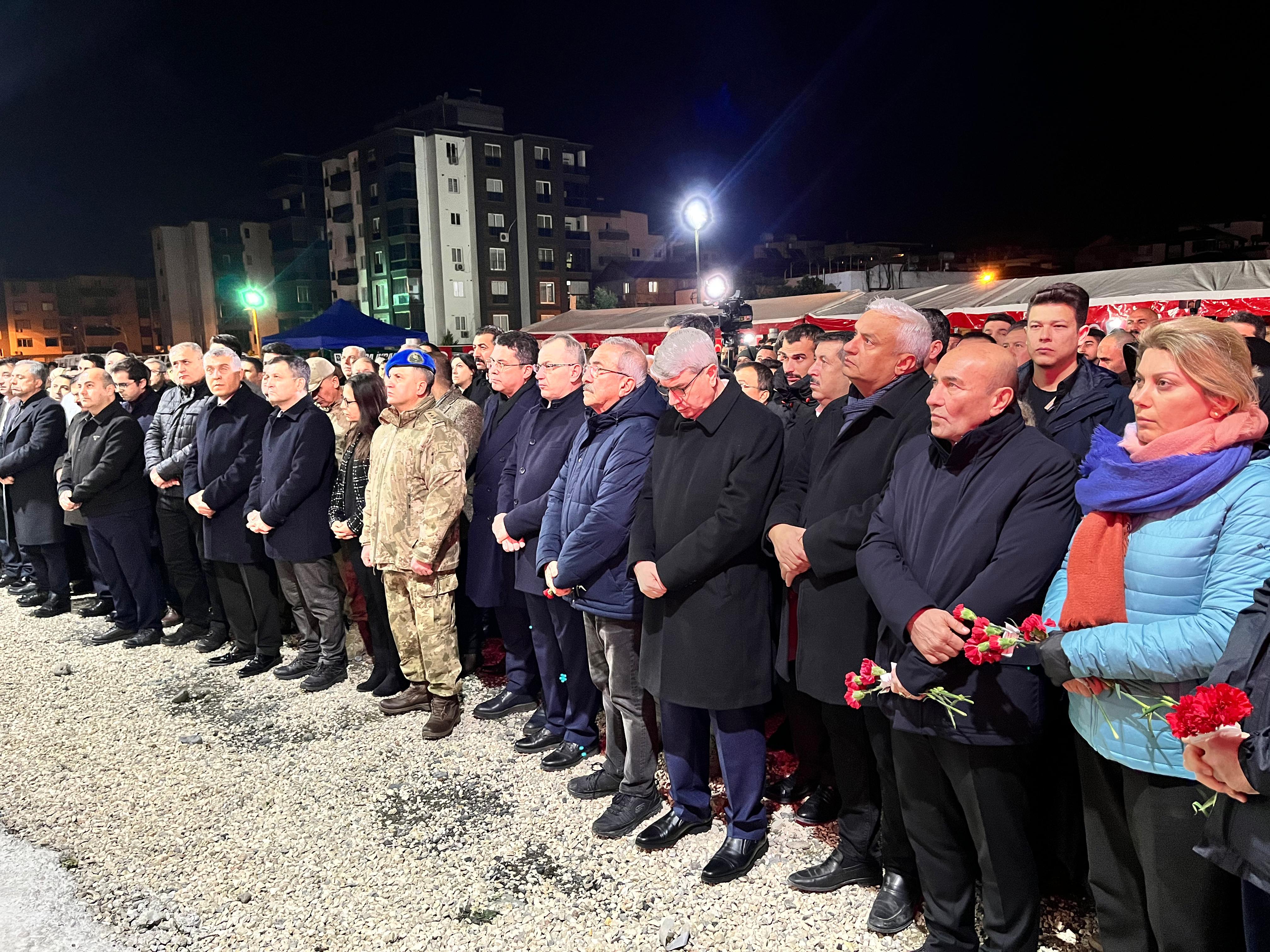 Kahramanmaraş merkezli 6 Şubat depremlerinin üzerinden bir yıl geçti. Afetin yaşandığı ilk günden itibaren tüm birimleriyle bölgede yaraları saran İzmir Büyükşehir Belediyesi, depremzedelere konteynerden psikolojik desteğe kadar her konuda destek oldu. Bir Kira Bir Yuva ve Umut Hareketi kampanyaları ile büyük bir dayanışma hareketi başlatan İzmir, afet bölgesinden elini çekmedi. Başkan Tunç Soyer, büyük depremin birinci yıldönümünde yine afet bölgesine geldi ve depremzedelerle buluştu. Büyük felaketin yıldönümünde saatler 04.17'yi gösterdiğinde hayatını kaybedenler büyük bir hüzün ve özlemle anıldı.Soyer anma törenlerine katıldıBaşkan Tunç Soyer, İzmir Büyükşehir Belediyesi'nin genel koordinasyonunu üstlendiği Osmaniye'de hayatını kaybedenler için düzenlenen anma törenlerine katıldı. CHP Milletvekilleri ve partililerle beraber ilk olarak Metin Tamer Sitesi bölgesinde düzenlenen törene katılan Başkan Tunç Soyer, burada hayatını kaybedenler anısına enkazın yerine karanfil bıraktı. Hemen sonrasında ise İstasyon Caddesi'nde gerçekleşen anma törenine katılan Başkan Soyer, depremzedelerle bir araya geldi. Soyer: “Acımız çok taze”İzmir Büyükşehir Belediye Başkanı Tunç Soyer, “Acımız çok taze, çok kısa süre geçti. Deprem öldürmüyor aslında, cehalet ve ihanet öldürüyor. Daha birkaç hafta önce Japonya'da benzer şiddette deprem oldu 286 kişi öldü. Burada on binlerin öldüğünü biliyoruz. Japonlar kadar yaşama hakkı yok muydu bizim insanlarımızın? Deprem bölgesinde, kuşağında yaşayan bir ülkeyiz. Maalesef ülkeyi yönetenler hiçbir zaman bunun idrakinde olmadıkları için bu kadar kayıp verdik. Dilerim bundan sonra gelecekler bu bilinçle insanların en temel yaşam hakkına saygı duyarak, koruyarak devleti yönetirler” diye konuştu.Kaya: “Tunç Soyer'e minnettarız”CHP Osmaniye Milletvekili Asu Kaya, depremin başından bu yana destekleri için İzmir Büyükşehir Belediye Başkanı Tunç Soyer'e teşekkür etti. Kaya, “İnsanlar içecek su bulamadılar, ekmek bulamadılar. O zaman da işte Tunç Soyer tüm imkanlarıyla Osmaniye'yi kardeş şehir ilan etti. Buraya tüm imkanlarını seferber ettiler. Kendileri de buradaydılar. İzmir Büyükşehir Belediyesi'ne çok uzun zaman yer gösterilmedi. Osmaniyeli olarak biz Tunç Soyer'e minnettarız” dedi. Ünlü: “Bizi yalnız bırakmadı”27. Dönem CHP Osmaniye Milletvekili Baha Ünlü de, “Ben de bir depremzedeyim. Her türlü ihtiyaç geldi belediyelerimizden. Biz İzmir Büyükşehir Belediye Başkanımız Tunç Soyer'e çok müteşekkiriz. Bizi yalnız bırakmadı” diye konuştu.
