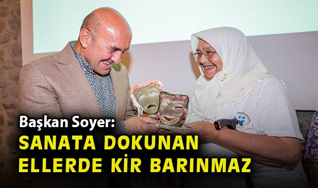 Başkan Tunç Soyer konuşmasında ilkokul yıllarında İzmir Radyosu’nda başlayan ve üniversite yıllarında Ankara Sanat Tiyatrosu’nda oyunculuk ve yönetmen asistanlığıyla devam eden tiyatro yaşamını anlattı. Tiyatronun her zaman hayatında öncelik olduğunu ifade eden Başkan Soyer, “Tiyatro benim hayatımda çok büyük bir yer tuttu. Tiyatro ayna tutmaktır. Kendinize, çevrenize ayna tutmaktır. Hem kendinizi hem de dünyayı daha iyi tanırsınız. Tiyatroyla yeteneklerinizi keşfedersiniz. Daha çok gülmeyi, hoşgörüyü tiyatro öğretir. Tiyatro empati yapmanın sanatıdır. Sanata dokunan ellerde kir barınmaz” dedi.