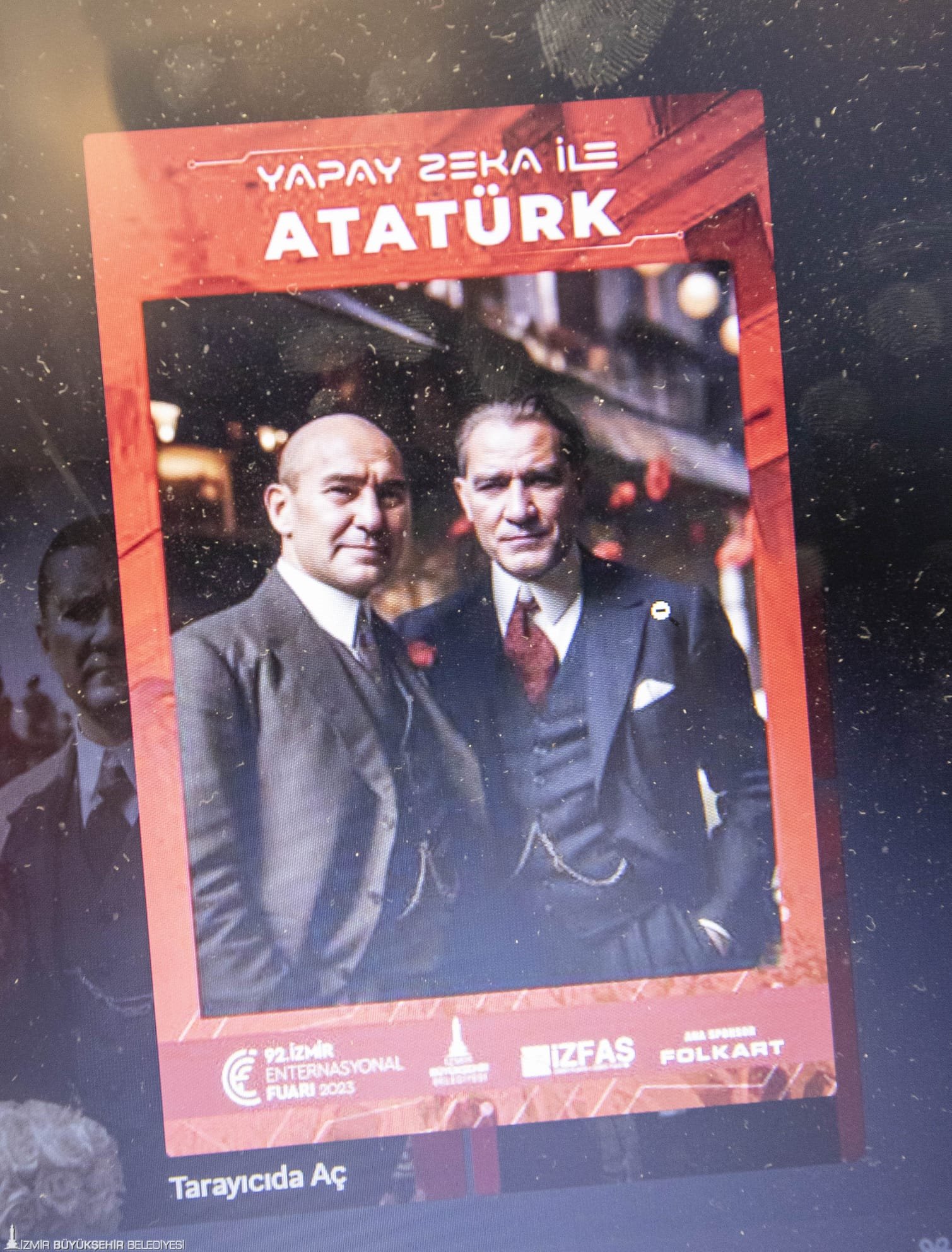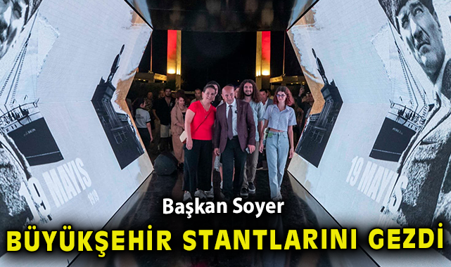 Soyer, fuar turu kapsamında gençlerle birlikte 100. Yılda Cumhuriyet Tüneli'ni geçti. Fuar ziyaretçilerinin büyük ilgi gösterdiği Yapay Zeka ile Atatürk bölümüne giren Başkan Tunç Soyer, yapay zeka yardımıyla Atatürk ile fotoğraf çektirdi.