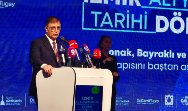 Çiğdem CANPOLAT GÜÇTEKİN / ÖNCÜŞEHİR - İzmir Büyükşehir Belediye Başkanı Dr. Cemil Tugay, İZSU Genel Müdürlüğü’nün Konak, Karabağlar ve Bayraklı İlçelerinde birleşik sistemle çalışan hatları yenilemek için yapacağı Yağmur Suyu Ayrıştırma Projesi’nin temel atma töreni sonrası basın mensuplarının sorularını cevapladı.