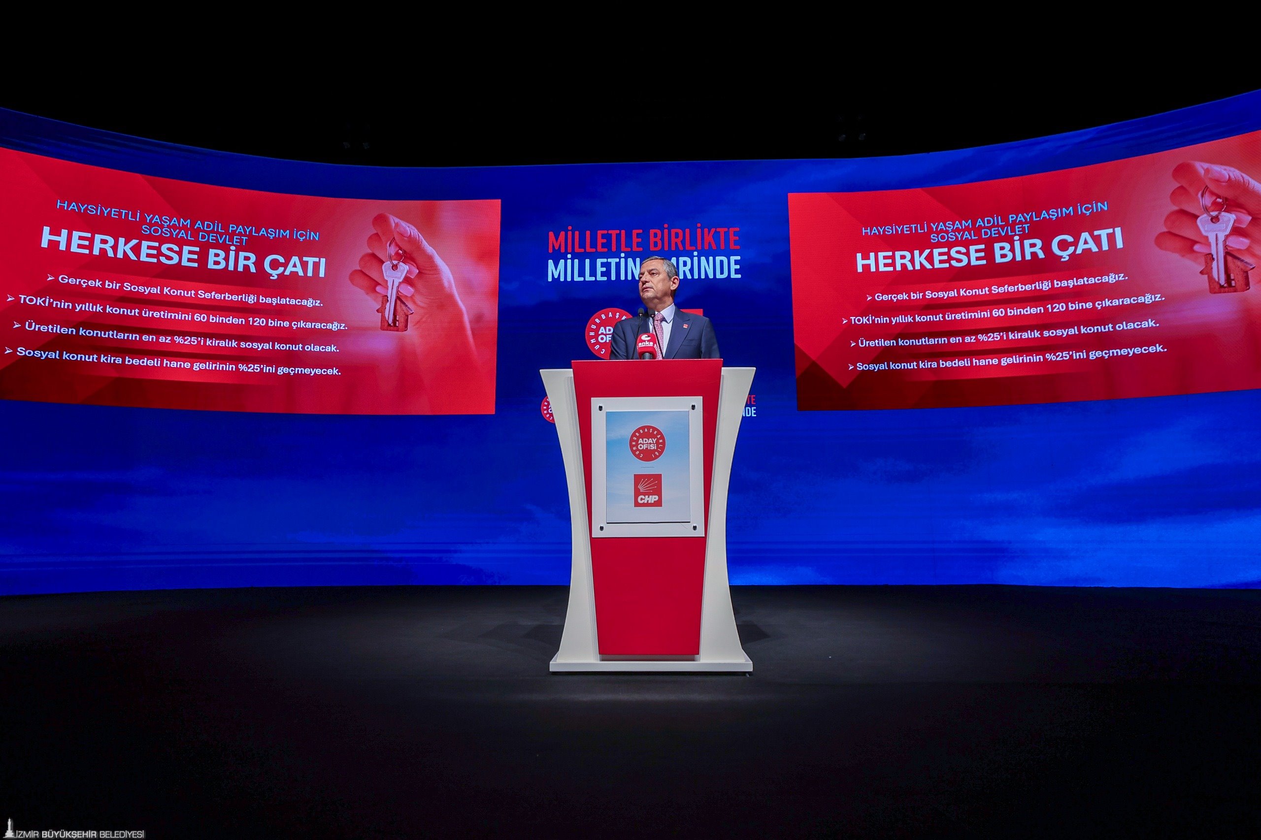 CHP Cumhurbaşkanlığı Aday Ofisi’nin (CAO) Ankara’da düzenlenen "Milletle Birlikte, Milletin Emrinde" buluşmasına katılan İzmir Büyükşehir Belediye Başkanı Cemil Tugay, önemli mesajlar verdi. CHP’nin vaatlerinin açıklandığı buluşmada CHP Genel Başkanı Özgür Özel’in kamu yönetimi açısından reform niteliğinde pek çok öneriyi paylaştığına değinen Başkan Tugay, “Eğitimde, sağlıkta, kalkınmada, tarıma, sanayiye destek anlamında, genel olarak da adaletsizliklerin, eşitsizliklerin giderilmesiyle ilgili pek çok politika önerisi bugün açıkladı. Kadınlarla, çocuklarla ilgili, yargı sistemiyle ilgili bence herkesin dikkatini çekecek pek çok öneri var. Bundan sonrası bizim için bunları bir taraftan seçmenlerimize aktarmak ki bu örgütümüzün görevi, diğer taraftan da yerel yönetimler olarak bu politikaları yerel düzeyde uygulamak üzere bir şeyler yapma görevleri var. Bugün bir dinamizm içerisinde olduğumuzu düşünüyorum, bir enerji olduğunu hissediyoruz ve bu enerji muhtemelen kademe kademe örgütlerimize ve halka yansıyacak. Güzel bir toplantı oldu. Çalışma yapan arkadaşlarımızı, partililerimizi tebrik ediyorum. Onlara güveniyoruz, Genel Başkanımıza güveniyoruz, hep beraber çalışmaya devam edeceğiz" dedi.