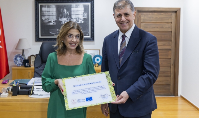 Avrupa Konseyi’nin kültür rotalarından Iter Vitis Rotaları Ağı’na üye olan İzmir, turizmde konumunu güçlendiriyor. Iter Vitis Başkanı ve Avrupa Temsilcisi Emanuela Panke İzmir Büyükşehir Belediye Başkanı Dr. Cemil Tugay’ı ziyaret ederek üyelik sertifikasını verdi. Başkan Tugay, kentin kültürünün, kültürel değerlerinin uluslararası alanlarda yer almasıyla İzmir turizmini daha iyi yerlere getireceklerini söyledi.
