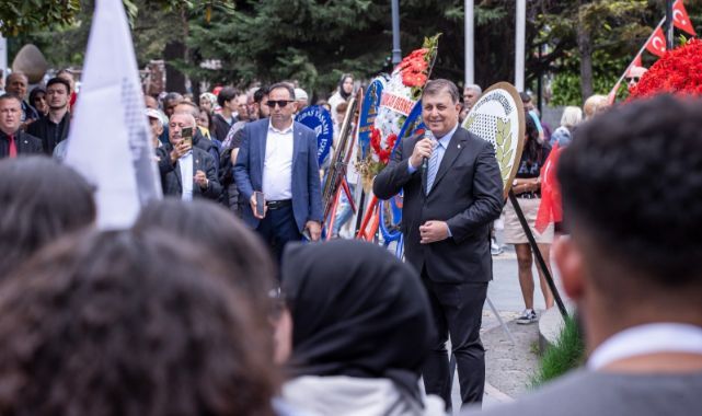 Törende konuşan İzmir Büyükşehir Belediye Başkan Dr. Cemil Tugay, İzmir’den selam getirdiğini söyleyerek sözlerine başladı. Çok büyük bir onur yaşadığını dile getiren Başkan Tugay; “Tüm yoldaşlarım, arkadaşlarım, cumhuriyetçiler, Atatürkçüler, Samsunlular, Türkiye’nin her yerinden gelen değerli yurttaşlar. Hepinizi İzmirliler ve İzmir Büyükşehir Belediyesi ailesi adına sevgi ve saygıyla selamlıyorum. Bana söz hakkı verdiğiniz için teşekkür ederim. Seçimden önce Samsunlu dostlarımıza verdiğimiz sözü yerine getirmek için buradayım. İzmir Büyükşehir Belediye Başkanı olduktan sonraki ilk 19 Mayıs'ta İzmirlilerin en içten duygularıyla sizlerin aranızda olmak üzere buraya geldim. Şu anda hissettiğim onuru, gururu tarif edemem. Çok büyük onur yaşıyorum. Ayrıca ‘İzmir’den buraya geldik’ diyenleri görmek de çok güzel” dedi.