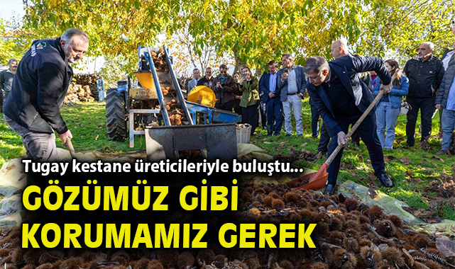 Ziyarette Beydağlı üreticilerle sohbet eden Başkan Tugay, kestanede yaşanan hastalıklar ve tedavi süreçleri, kalite, rekolte gibi konularda bilgi aldı. Başkan Tugay, “Kestane çok değerli, gözümüz gibi korumamız gereken bir ürün. Her yerde yetişmiyor ama yetiştiği yerlerde de ciddi bir gelir sağlıyor. Bu bölgemizdeki kestanelerin büyük bir bölümü ihracata gidiyor. Kestanede başa bela gibi birkaç hastalık var. Büyükşehir Belediyesi olarak hastalığa dirençli ağaçlar dağıtarak, hastalıklarla mücadele ederek üreticilerimize destek oluyoruz. Bu şekilde çalışmaya devam edeceğiz” diye konuştu.