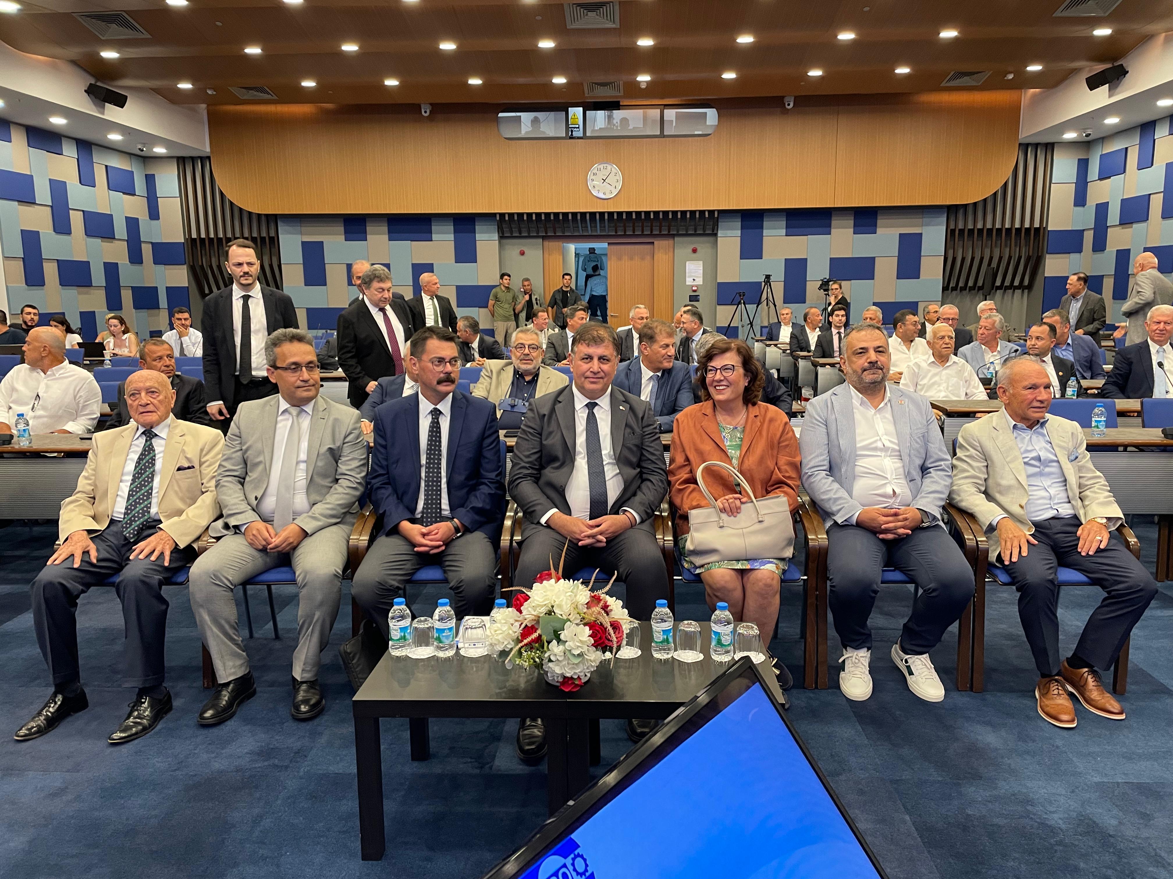 EBSO Yönetim Kurulu Başkanı Ender Yorgancılar ev sahipliğinde gerçekleşen toplantıya EBSO Meclis Başkanı İbrahim Gökçüoğlu başkanlık yaparken İzmir Büyükşehir Belediye Başkanı Dr. Cemil Tugay ve CHP İzmir İl Başkanı Şenol Aslanoğlu, İzmir Büyükşehir Belediyesi Meclisi Başkanvekili Mehmet Atilla Baysak da katılım gösterdi.