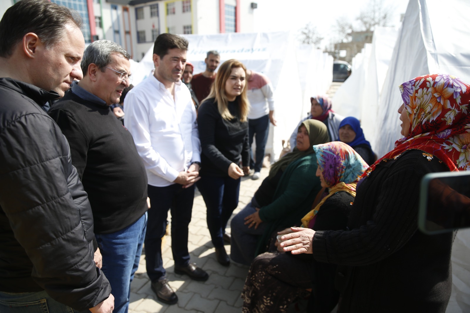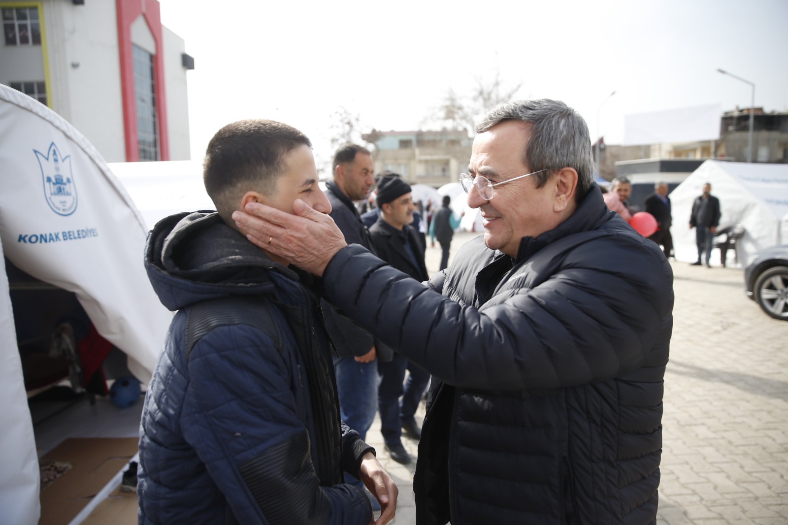 Konak Belediye Başkanı Abdül Batur, CHP Genel Başkan Yardımcısı ve Kahramanmaraş Milletvekili Ali Öztunç, CHP İzmir Milletvekili Sevda Erdan Kılıç, CHP Zonguldak Milletvekili Deniz Yavuzyılmaz ve CHP Trabzon Milletvekili Ahmet Kaya ile birlikte Konak Belediyesi’nin Kahramanmaraş’ın Dulkadiroğlu ilçesinde kurduğu çadır kenti ziyaret etti. Yaklaşık 500 depremzedeye yuva olan yerleşkede deprem felaketinden etkilenen ailelerle buluşan Başkan Batur, hal hatır sordu, depremzedelerle dertleşti, geçmiş olsun dileklerini iletti. Aile büyüklerinden ihtiyaç ve istekleri dileyen Başkan Batur çocukları da unutmadı. Çadır kentte yeni bir hayata başlayan ailelere “Her zaman yanınızdayız” diyen Başkan Batur, çocuklar için kurulan oyun çadırında miniklerle de zaman geçirdi.