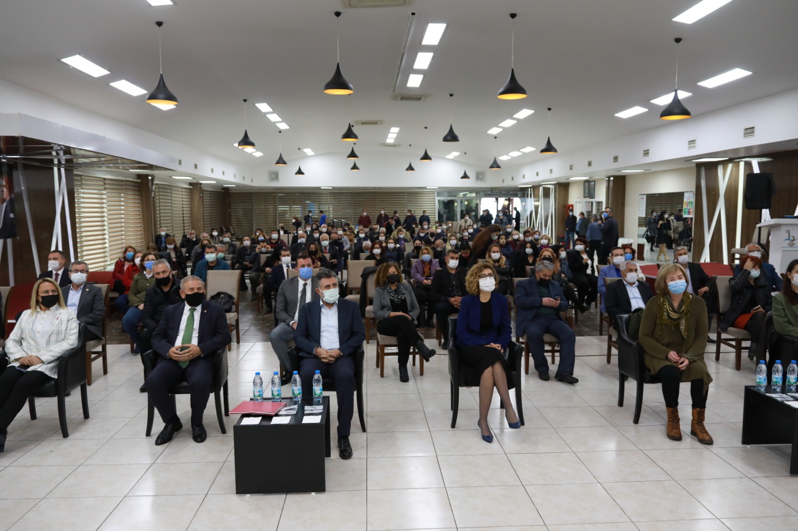 KADINLARIN ÖNÜNÜ KESERSEK DAHA ÇOK GERİLERİZYeni Kuşak Köy Enstitülüler Derneği Başkan Yardımcısı, Akademisyen Dr. Semiha Özalp Günay, “Şuan Türkiye’de kadın dediğimizde aklımıza gelen iki şey var: 1 cinayet, 2 baş örtüsü bugünlerde bir de İstanbul sözleşmesi var. Kadın bu duruma nasıl geldi? Cumhuriyetin çağdaş, laik, kamusal alanlarda yüzde 70 oranda çalışan kadınlar ne oldu da evlerine kapandılar ve hayatlarını değiştirmeye kalktıklarında erkek şiddetiyle karşı karşıya geliyorlar? Sorunun yanıtı: Bizim kız çocuklarını eğitmemizden ya da eğitememizden kaynaklandığını düşünüyorum. Köy enstitülerinin en önemli ilkelerinden biri mümkün olduğunca fazla kız öğrenci alalımdı. Ne kadar fazla olursa o kadar fazla örnek olur düşüncesi vardı. O kız çocuklarının her biri tarımda, sosyal yaşamda, kültürel hayatta o dönemin ve bu dönemin toplumsal cinsiyet rollerini benimseyerek örnek oldu ve ayrıca köylülerin ihtiyacı olan işleri de öğrenip mezun oldular. Dünya ekonomik forumunun her yıl açıkladığı küresel cinsiyet eşitsizliği sıralamasında Türkiye 156 ülke arasında 133’üncü sırada yer alıyor. Kadınlarımızı eğitmez ve demokratik hayatın içine katmazsak, onları özel hayata hapsedip, kamusal alana çıkmalarının önünü kesersek çok daha aşağılara gerileriz. Bunu değiştirebilmek için, demokrasiyi, laikliği, bilimsel düşünmeyi ve dayanışmayı gerçekleştirebilmek için köy enstitülerine ve ilkelerine çok ihtiyacımız var. Dilerim köy enstitülerinin ilkeleri doğrultusunda yeni bir eğitim modeli geliştirebiliriz” dedi.Konuşmaların ardından Başkan Sandal, konuşmacılara katılımlarından dolayı teşekkür plaketi verdi.