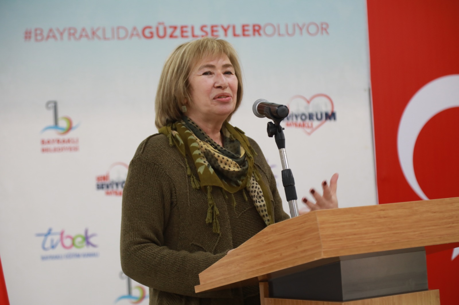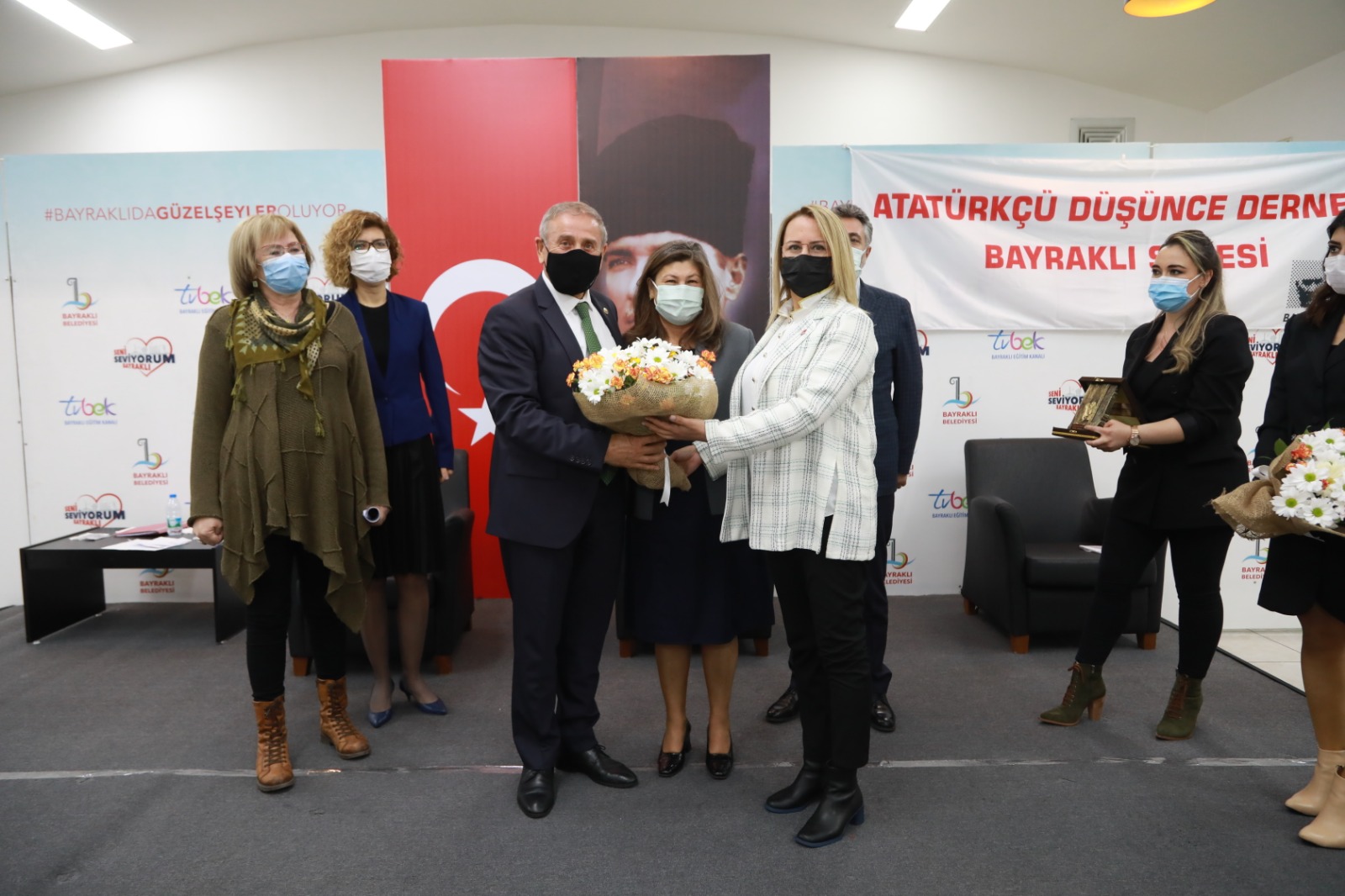 KÖY ENSTİTÜLERİ BİZİ BAŞARIYA ULAŞTIRACAK EN GÜVENLİ YOLDUREtkinliğin açılışında konuşan ADD Bayraklı Şube Başkanı Güngör, “Çağdaş, laik, yerinde değişimin, üretimin, kalınmanın, sanatın öğretilmesi amacıyla kurulan köy enstitüleri cumhuriyetin idealist yöneticileri tarafından yaşama geçirilen önemli bir programdır. Kalkınmayı, bilimi ve akılcılığı ön plana çıkaran yaklaşımını hayata geçirmiş en önemli adımdır köy enstitüleri… Köy enstitüleri, ülkemizi aydınlığa, kalkınmışlığa, mutluluğa, barışa ve başarıya ulaştıracak en güvenli yoldur” dedi.