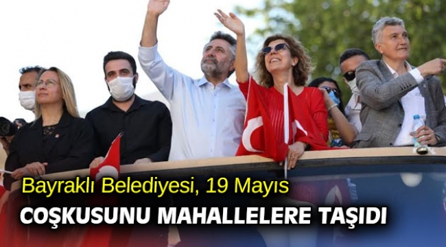 24 MAHALLEDE 19 MAYIS KUTLAMASIEtkinliklerin ilk gününde dün 12 mahalle gezilirken bugün de (19 Mayıs Çarşamba) kutlama programı Sevgi Yolu girişindeki Atatürk Anıtı’na çelenk sunumlarıyla başladı. Bu kapsamda 16:30’da Bayraklı Belediyesi ana hizmet binasından hareket edilerek; Bayraklı, Çiçek, Alpaslan, 75’inci Yıl, Cengizhan, Refik Şevket İnce, Muhittin Erener, Çay, Adalet, Osmangazi, Manavkuyu ve Mansuroğlu mahalleleri kortej eşliğinde gezilecek. Başkan Sandal, vatandaşların bayramını kutlayacak, 19 Mayıs coşkusu Bayraklı’nın tüm mahallelerine yayılacak.