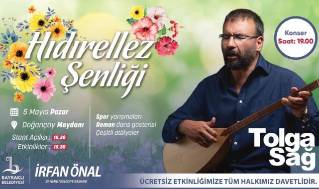 Bayraklı Belediyesi, baharın habercisi Hıdırellez’i Doğançay’da düzenlenecek şenlikle kutlayacak. 5 Mayıs'ta gerçekleştirilecek etkinlik; spor müsabakaları, müzikli gösteriler, şovlar ve danslarla renklenecek. Etkinliğin finalinde ise sazıyla, türküleriyle ünlü sanatçı Tolga Sağ sahne alacak. Başkan İrfan Önal, “Tüm İzmirlileri Hıdırellez Şenliğimize bekliyoruz. Bu coşkuyu hep birlikte yaşayalım” dedi.