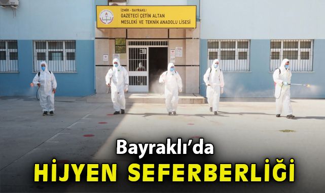 Bayraklı Belediyesi Çevre Koruma ve Kontrol Müdürlüğü tarafından sürdürülen ve kamusal alanlarda salgın riskini önlemek, olası hastalıkların önüne geçmek için başlatılan çalışma kapsamında ilaçlama ekibi oluşturuldu. Özel donanımlı ekip, ilçe genelinde bulunan eğitim ve ibadethane alanlarında dezenfeksiyon ve ilaçlama çalışmalarına başladı. Bu kapsamda tüm eğitim yuvalarının, cami, cemevi ve kiliselerin, apartman ve site çevreleri ile dere kenarlarının baştan sona steril hale getirileceği belirtildi. Çalışmaların aralıksız süreceği ifade edildi.