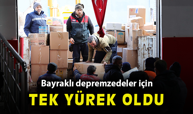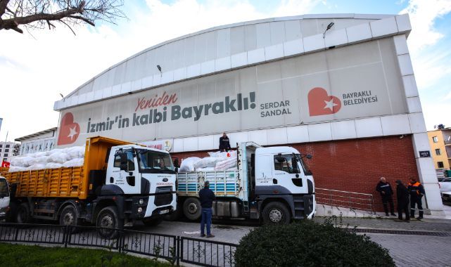 Bayraklı Belediyesi’ne ait bir ambulans da acil tıp teknikerleriyle birlikte kurtarma çalışmalarına katılmak üzere Hatay’a gönderildi. Son 48 saatte; 43 bin giyim eşyası, 30 bin bebek bezi, 1000 kutu mama, 22 bin gıda ürünü, 10 bin battaniye/ yorgan ve binlerce acil ihtiyaç malzemesi toplanarak deprem bölgesine teslim edildi.HAVA- DENİZ VE KARADAN YARDIM SEFERBERLİĞİTarihinin en büyük doğal afetlerinden birini yaşayan Türkiye’de kalpler deprem bölgesinde kurtarılmayı bekleyen vatandaşlar için atarken, Bayraklı’da da yardım seferberliği aralıksız sürüyor. Belediyenin yardım çağrısına kulak veren binlerce Bayraklılı’nın sağduyusu ile toplanan tırlar dolusu ihtiyaç malzemesi 200’e yakın personel ve gönüllü ordusuyla paketlenerek hava, deniz ve kara ulaşımıyla deprem bölgesine gönderildi.