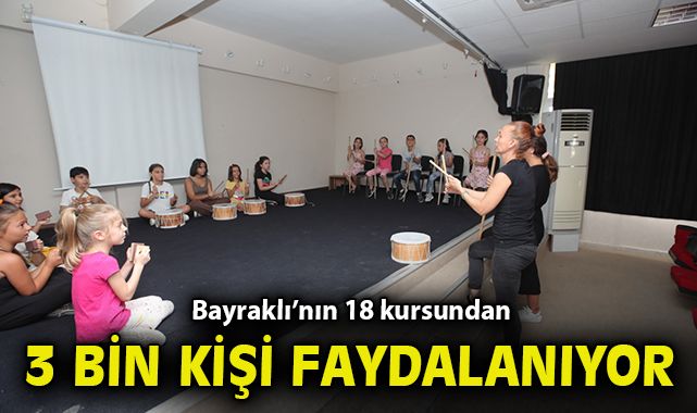 3 BİN KURSİYER KATILIYORHerkes için sanat parolasıyla yola çıkan Bayraklı Sanat ve Müzik Akademisi (BASAMAK), vatandaşlardan büyük ilgi gördü. Bu kapsamda Bayraklı Belediyesinin, bu yıl 18 branşta açtığı atölyelere kış sezonu boyunca yaklaşık 3 bin kişi katıldı. 11 farklı merkezde vatandaşla buluşan kurslarla ilgili kayıt veya detaylı bilgi 477 20 00 (2565-2571) numaralı telefondan alınabiliyor.KURSLARIMIZA BEKLİYORUZBaşkan Serdar Sandal, “Kurslarımızla çocuklarımızın ve gençlerimizin kişisel gelişimine katkı sağlamanın mutluluğunu yaşıyoruz. Yetişkinler için de hobi kursları düzenliyoruz. Kültür-sanat ile ilgilenen herkesi atölyelerimize katılmaya davet ediyoruz” dedi.HANGİ KURSLAR VERİLİYOR?BASAMAK çatısı altında düzenlenen eğlenceli matematik, gitar, bağlama, satranç, piyano, drama, halk dansları, felsefe, görsel sanatlar, keman, tiyatro, mandolin, dans, İngilizce, Türk halk müziği, astronomi ve uzay bilimleri, eğlenceli bilim ve robotik kodlama atölyeleri hem çocuklara hem de yetişkinlere eğlenme ve öğrenme imkanı sunuyor.
