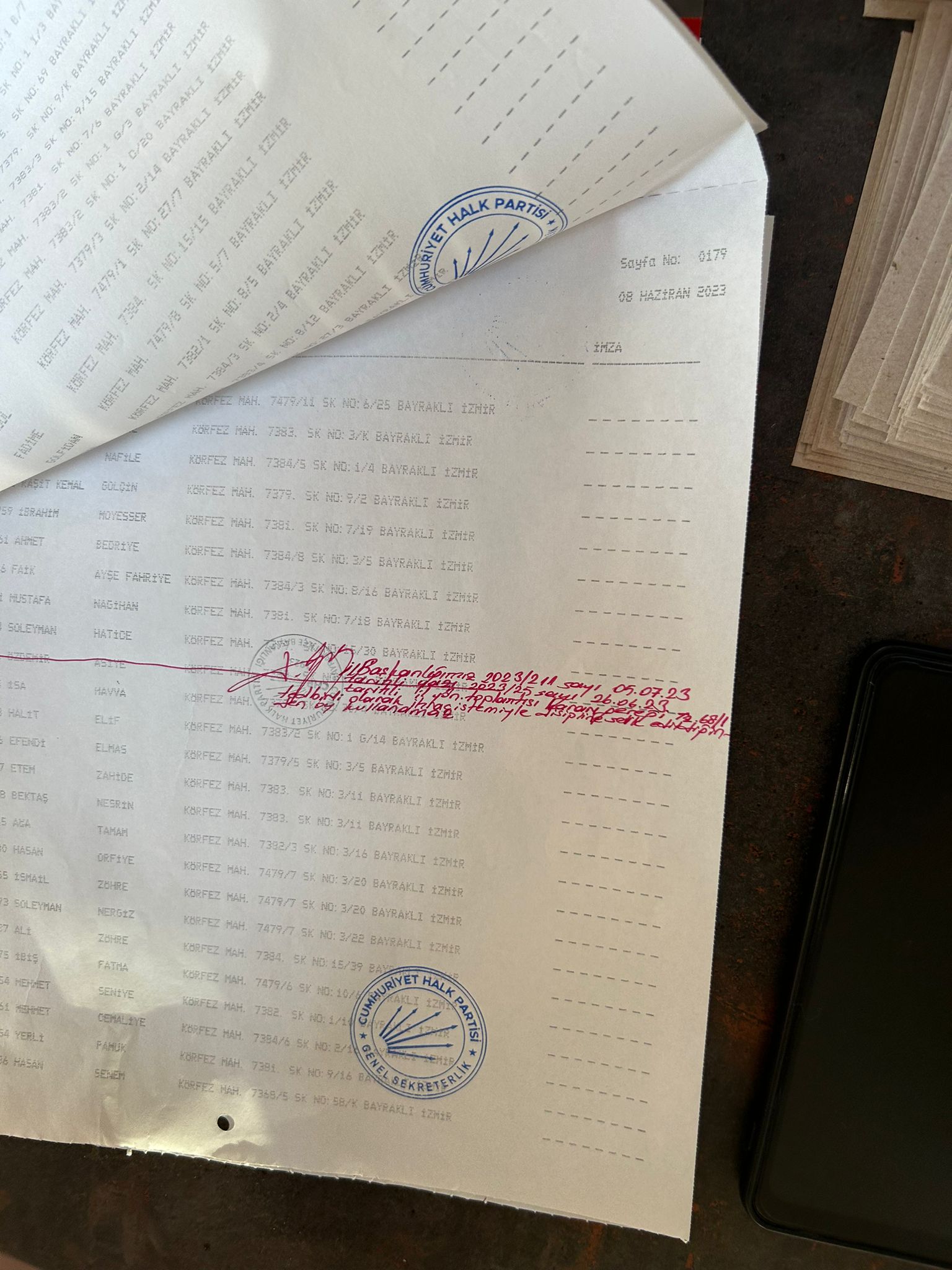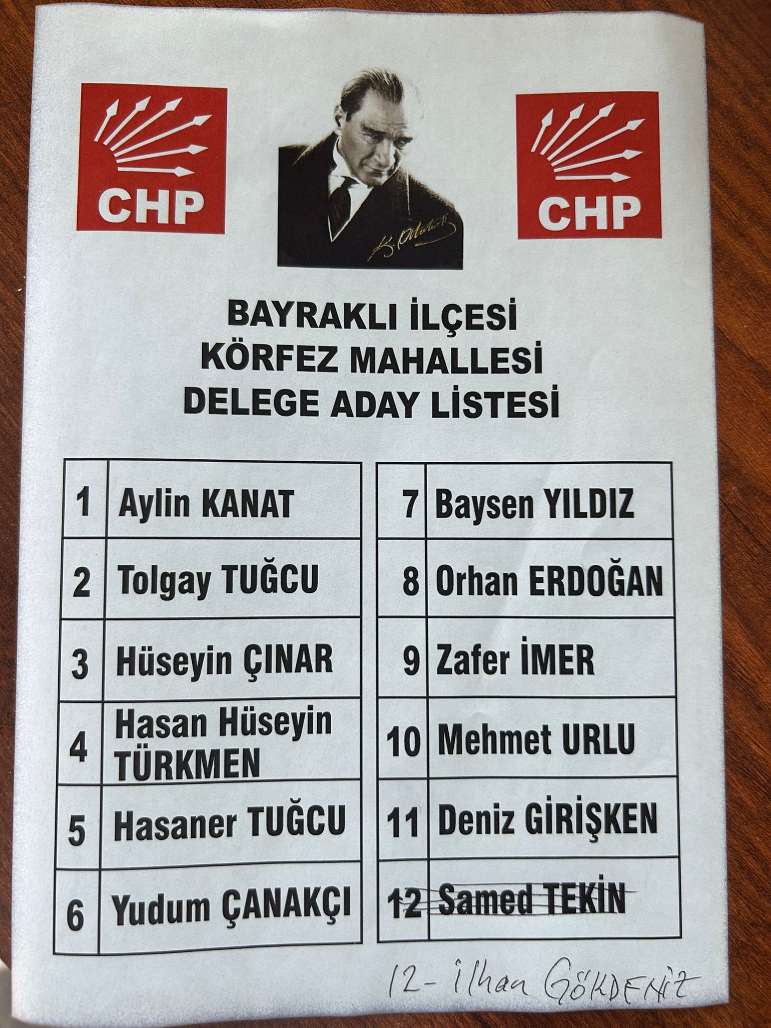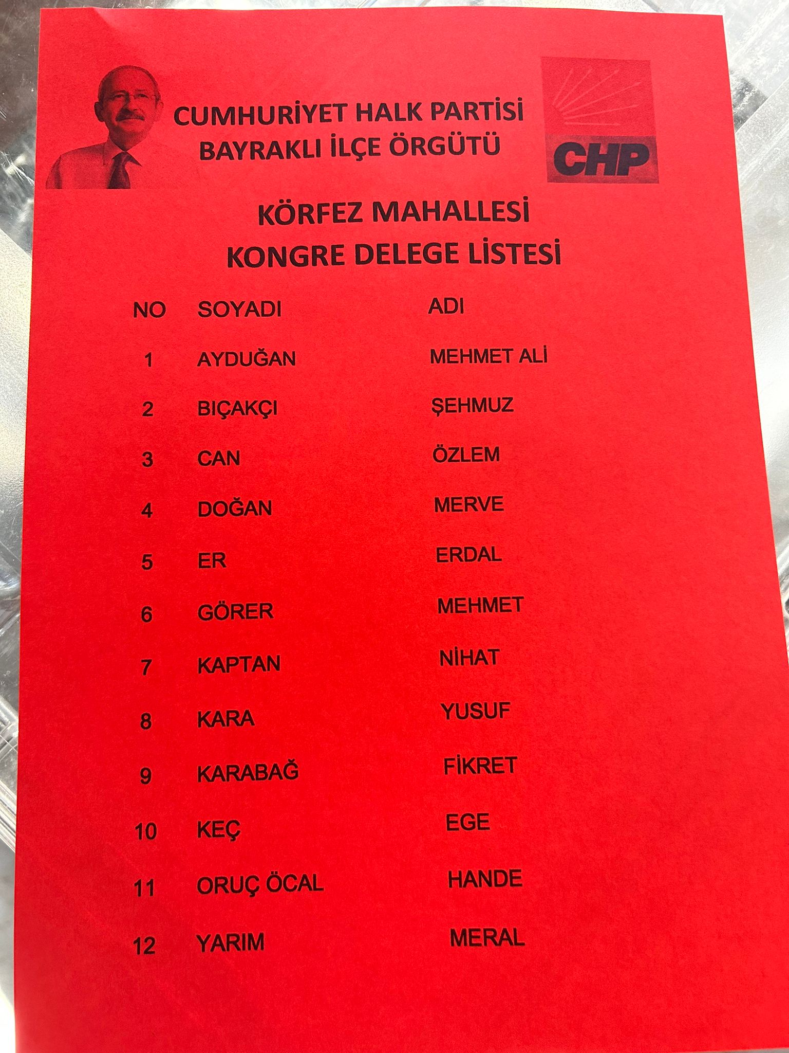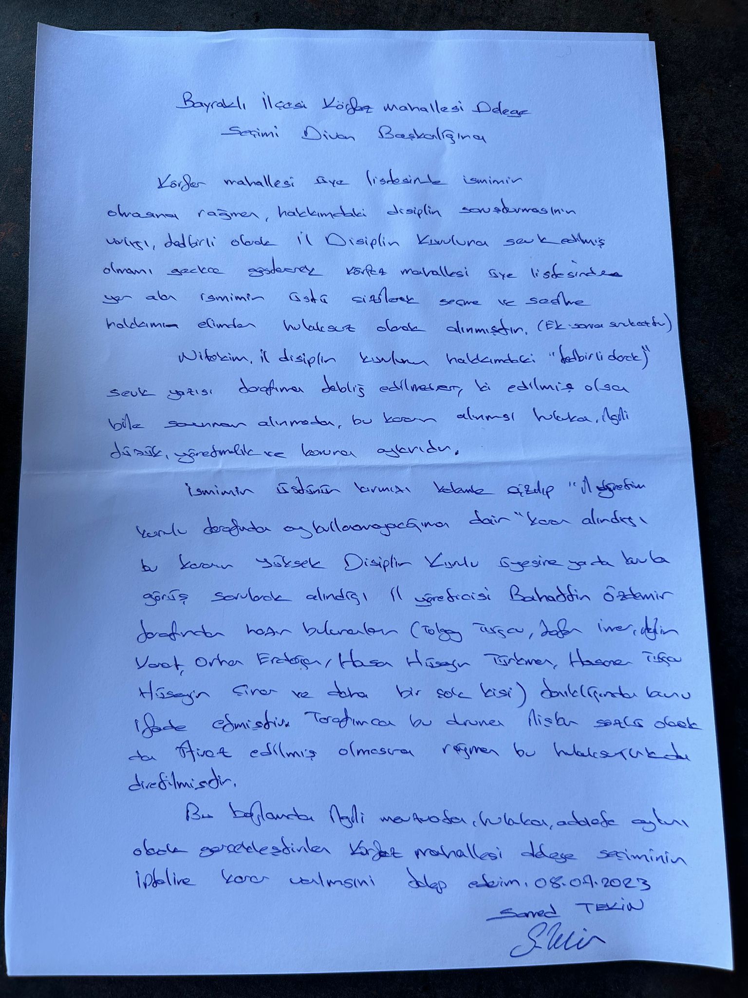 Delege listesinde Tekin’in isminin yanına İl Başkanlığı tarafından yazılan, “İl Başkanlığımız 2023/211 sayı 05,07,2023 tarihli yazı 2023/25 sayılı 26.06.2023 tarihli il yönetim toplantısı kararı gereği, 12.68/1 tedbirli olarak ihraç istemiyle disipline sevk edildiğinden oy kullanamaz” ifadeleri yer aldı.
