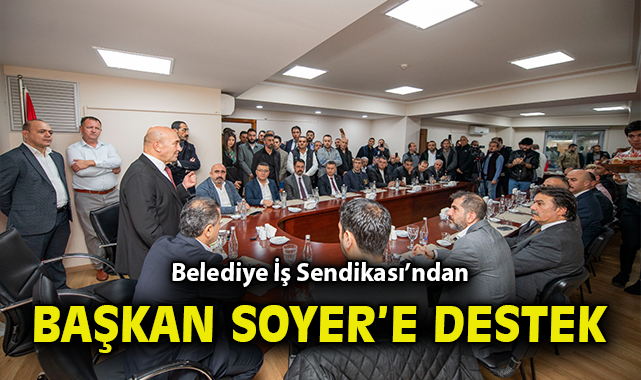 İzmir Büyükşehir Belediye Başkanı Tunç Soyer, İzmir Büyükşehir Belediyesi’nin birçok biriminde örgütlü Türkiye İşçi Sendikaları Konfederasyonu’na (TÜRK-İŞ) bağlı Belediye İş Sendikası İzmir Şubesi’nin üyeleriyle bir araya geldi. Belediye İş Sendikası’ndaki buluşmada yüzlerce işçi Başkan Soyer’i “Asla yalnız değilsin”, “İzmir Tunç’tur, Tunç kalacak” sloganları ile karşıladı. Belediye İş Sendikası’nın İzmir şubelerinde örgütlü işçiler 9 Eylül’ün 100’üncü yılı kutlamalarında Atatürk’ün Nutuk kitabından alıntı yaptığı için hakkında soruşturma başlatılan İzmir Büyükşehir Belediye Başkanı Tunç Soyer’e geçtiğimiz hafta Egemenlik Evi önünde toplanarak destek vermişti.