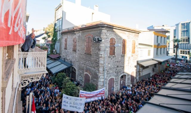 “Bedel ödemeye hazırım”İzmir Büyükşehir Belediye Başkanı Tunç Soyer konuşmasını şöyle sonlandırdı: “Ben bedel ödemeye hazırım. Hiç kimsenin kuşkusu olmasın. Sizin evlatlarınızın aydınlık geleceği için, bu memlekette yaşayan herkesin yüzünün gülmesi için sonuna kadar bedel ödemeye hazırım. Bana bugün hayatımın en büyük ödülünü verdiniz. Benim yalnız olmadığımı bana hissettirdiniz. Bu can da size feda olsun. Bu güzel memlekette güzel günler görmek için hep birlikte yürüyeceğiz ve çok güzel günler göreceğiz. Bu memleketin dağlarında çiçekler açtıracağız ve göreceksiniz çok daha güzel bir memleketi hep birlikte kuracağız.”