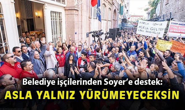 9 Eylül’deki tarihi kutlamaların ardından gelişen süreçte İçişleri Bakanlığı tarafından İzmir Büyükşehir Belediye Başkanı Tunç Soyer’e soruşturma izni verilmesinin ardından Devrimci İşçi Sendikaları Konfederasyonu’nda (DİSK) örgütlü belediye işçileri Başkan Tunç Soyer’e sahip çıktı. Konak’taki Tarihi Belediye Binası’nın önünde bugün mesai başlamadan toplanan işçiler, “Asla yalnız yürümeyeceksin”, “Birleşe birleşe kazanacağız”, “Kurtuluş yok tek başına, ya hep beraber ya hiç birimiz”, “Susmuyoruz, korkmuyoruz, itaat etmiyoruz” ve “Tunç Başkanı yedirmeyeceğiz” sloganları attı. Destek mitinginde “Tunç Başkan yalnız değilsin”, “Aşkla İzmir, aşkla Tunç Soyer”, “Memleket sevdalısı Tunç Başkan”, “Varlığıyla bize güç veren yolumuzu ışığıyla aydınlatan Tunç Başkan yalnız değilsin” yazılı dövizler taşındı.
