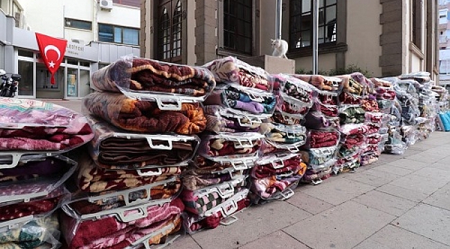 Bergama Belediyesi iki kamyonetle afetzedelere battaniye ulaştırdı.