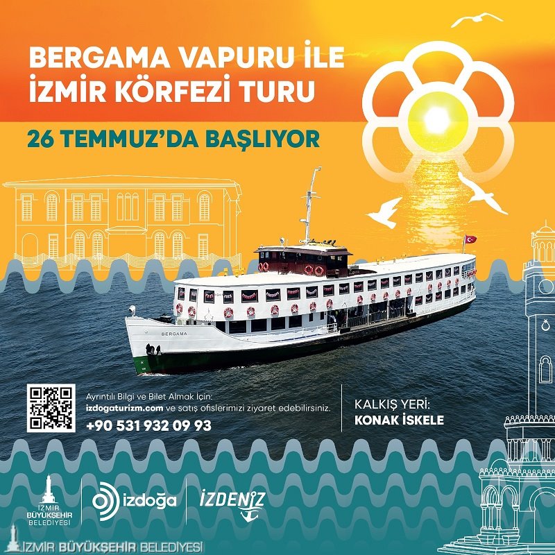 İzmir Büyükşehir Belediyesi şirketlerinden İzDoğa ve İzdeniz, İzmir’in doğal ve tarihi güzelliklerini gün yüzüne çıkarmaya devam ediyor. İzmir’in simgelerinden Bergama Vapuru ile düzenlenecek İzmir Körfezi turu, körfezdeki birçok noktayı gezme ve tanıma imkânı sunuyor. İlk tur, 26 Temmuz’da yapılacak.