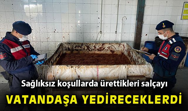 İzmir İl Jandarma Komutanlığı ekipleri, Kemalpaşa ilçesi Bağyurdu Sarılar Mahallesi'nde M.M.B. adlı şahsın iş yeri açma ve çalıştırma ruhsatı bulunmayan büyükbaş hayvan besi çiftliğine ait eklentide insan sağlığına aykırı şekilde salça üretimi yaptığı bilgisi üzerine çalışma başlattı. Kemalpaşa Cumhuriyet Başsavcılığı koordinesinde harekete geçen İzmir İl Jandarma Komutanlığı Çevre Koruma Timi, Kemalpaşa İlçe Jandarma Komutanlığı, Gıda Tarım ve Hayvancılık Müdürlüğü ve zabıta ekipleri, belirlenen adrese operasyon düzenledi. Operasyonda 4 üretim havuzu, 4 üretim makinesi, plastik bidonlar ve havuzlar içerisinde piyasa değeri 1 milyon 600 bin lira olan toplam 25 bin kilo işlenmiş salça ele geçirildi. Şüpheli M.M.B. hakkında "bozulmuş veya değiştirilmiş gıda veya ilaçların ticareti" suçundan adli işlem başlatılırken, işletme mühürlenerek faaliyetine son verildi.