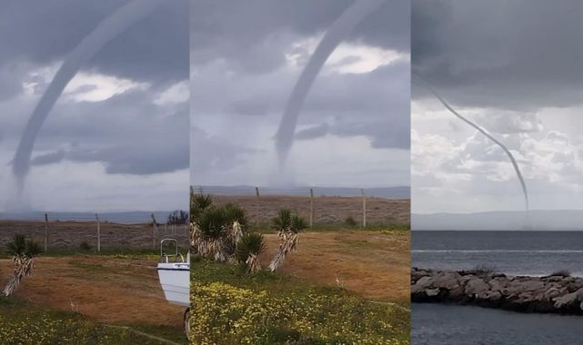 Çanakkale’nin Biga ilçesine bağlı Karabiga beldesi açıklarında denizde hortum oluştu. Denizde oluşan hortum cep telefonu kamerasına yansıdı.