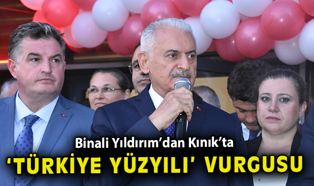 Belediye Başkanı Sadık Doğruer ile ilçede önemli işlere imza attıklarını belirten Yıldırım, “Kınık’a doğal gaz geldi mi? Gençlik merkezi, TOKİ’ler, devlet hastanesi, üniversite yapıldı mı? Halı sahalar, gençlik merkezleri, aquapark, köylerde halı sahalar açıldı. Yolun halini biliyorsunuz. Şimdi kaymak gibi yolunuz var mı? İşimiz hizmet, gücümüz millet. Cumhurbaşkanımız Recep Tayyip Erdoğan’ın varlığı, dirayeti, liderliği sayesinde sadece Kınık değil, İzmir değil, 780 bin kilometrekare vatan toprağının her köşesinde bunun gibi hizmetlerimiz var. Ayinesi iştir kişinin, lafa bakılmaz. Adam odur ki, bu dünyada bıraka bir eser, eseri olmayanın yerinde yeller eser. Ne bir eseri ne beş eseri. Gani gani. Memleketin her köşesi eserlerimizle dolu Elhamdülillah. Siz güç verdiniz, ‘yürü’ dediniz. Biz de yürüdük, bugünlere geldik. Burada da duracak değiliz. Türkiye Yüzyılı'ndayız. 29 Ekim’de büyük bir coşkuyla, milletçe Cumhuriyetimizin 100'üncü yılını kutlayacağız. Yeni yüzyıl Türkiye’nin yüzyılı olacaktır. Türk Devletleri Teşkilatı’nın aksakal heyeti başkanı olarak diyorum ki, sadece Türkiye’nin değil, tüm Türk dünyasının yüzyılı bu yüzyıldır. Bütün Kafkaslar’da, Balkanlar’da, Orta Asya’da, 4,5 milyon kilometrekarelik coğrafyada evelallah bayrağımız dalgalanacak, ihtişamlı günlerimiz tekrar geriye gelecek. Bunun ilk sınavını 2024 Mart’ta vereceğiz.” şeklinde konuştu