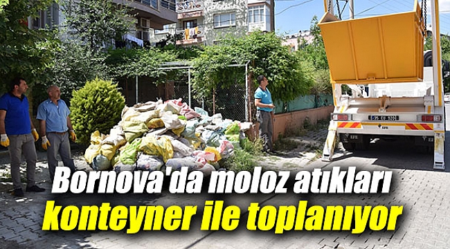 Bornova'da moloz atıkları konteyner ile toplanıyor