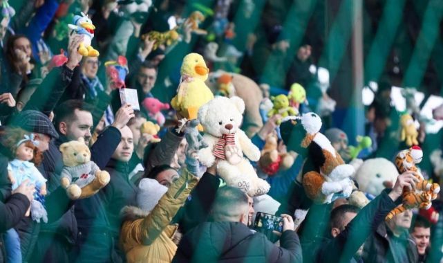 Pomozi.ba insani yardım kuruluşu tarafından organize edilen oyuncak toplama kampanyasında, maç öncesi yüzlerce taraftar beraberinde getirdikleri oyuncakları sahaya gönderdi.