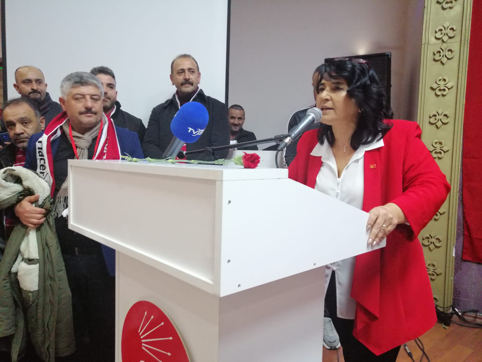 “Herkese canı gönülden teşekkürlerimi sunuyorum. Hem kırmızı hem de mavi atkılı kardeşlerim, Hacer Taş, 7 yaşında yemiş fabrikasında işçilik yapmaya başlamış bir işçi kızı işçidir. Hacer Taş, barikatların arkasında gözaltına alınan; şiddet gören, işkence gören bir emekçidir. Hacer Taş, açlık grevlerine, Ankara’ya yürüyüşüne gitmiştir. Hacer Taş, gözaltına alınmış, savunan ise Ali Hıdır arkadaşımdır. Asla yalnız yürümeyeceğim asla, asla. Hacer Taş, verdiği emek mücadelesinde, aldığı yaralardan berelerden ve gördüğü yaralardan dolayı çocuk sahibi olamamış ama yüzlerce istismara uğramış çocuğa yol göstermiş, destek olmuştur. Hacer Taş, hayat mücadelesinde bir çocuk sahibi olamamış. Akşam eve geldiğinde keşke benim için şu kadar bir şey yapsaydın diyen bir çocuk özlemi ile yaşamıştır. Partide yer alan tüm çocukların ablası, annesi olarak kendini avutmuştur. Dershaneye gidememiş; dershanedeki çocuklar çay servisi yapmış, sandviç satmıştır. Hepimiz hayat mücadelesinin madalyasını göğsümüzde taşıyoruz. Bir buçuk yıldır il sekreteriyim; İstanbul seçimlerinde seçime gidemedim çünkü burada İstanbullu öğrencilere otobüs ayarlayan, oy kullanmalarını sağlayan kişidir. Çeşmede gece kulüplerinde çalışan İstanbulluları bulup onları İstanbul’a oy kullanmaya gönderen kişidir. İşçi kızı işçidir bununla da onur guru duyar. Bugün bu seçimin sonucu ne olursa olsun bir yıl önce kaybettiğim işçi babama armağan edeceğim. Hak, hukuk adalet diyerek Genel Başkanımız Kemal Kılıçdaroğlu, öncülüğünde yürüyenlere selam olsun. Selam olsun Faşist iktidar karşısında direnlere darağacına gözünü kırpmadan yürüyen Denizlere selam olsun. Selam olsun 7 düvele başkaldıran Kara Fatmalara, Gördesli Makbulelere selam olsun. Selam olsun ya istiklal ya ölüm diyen Mustafa Kemal ve askerlerine. Kurtuluşun ve kuruluşun dev çınarı CHP’nin dev örgütüne selam olsun. Günlerdir burada sizin karşınızda yapacağım konuşmayı düşünüyorum. Bu durum beni hem heyecanlandırıyor hem de endişelendiriyor. Bugün gördüm ki hala bir arada olmayı başaramıyoruz. Oysa zafer kazanan ordular kendi içinde savaşmayanlardır. Yol yürüdüğüm, sloganlar attığım, soğukta yanı lokmayı paylaştığım siz kardeşlerimden, yoldaşlarımdan daha kıymetli, daha değerli ne olabilir ki. Ben devrimci olmaya aday biriyim 50 yaşındayım hala öyleyim. Çünkü çok bedeller ödendi, biz daha bunun neresindeyiz ki. Ben bugün burada bir makam koltuğuna oturmak koltuğuna oturmak hevesi ile çıkmadım yola. Benim, bizim bir kavgamız var, yereldeki iktidarı ulusala taşıma hedefimiz var. Bu ülkeye, Cumhuriyete, CHP’YE ve örgütümüze sevdamız ve borcumuz var. Benim alacağım yok bu örgüte borcum var borcum. Buca’mız İzmir’in kültür başkenti. Anadolu’nun dört bir yanından kopup gelmiş bizlerin. Kimsenin dinine, ne giydiğine, ne konuştuğuna bakmadan yaşadığı bir ilçe. CHP’ye 3 dönem Belediye Başkanlığını aday görmüş bir halkımız var. Bizim kavgamızı büyütme, ateşi yakma hedefimiz var. Bizler saralara biat etme, ihale kazanma yarışında değiliz. Bizler örgütü için savaşanlarız. Bizler ticaret için cemaat kurum dini sömürenleri, halkı kandırıp soyanları, yurtlarda çocuklarımız istismar eden şeytan soylarını, kadını ikinci sınıf görüp kadınları öldürenleri cesaretlendirenleri, Mustafa Kemal düşmanlarını bu topraklardan söküp atma yarışındayız. Pir Sultan Abdal’ın anlattığı zorbalık ülkemizde yaşanıyor; Demir’i demirle dövdüler biri sıcak biri soğuktu, insanı insanla dövdüler biri aç biri toktu. Artık insanımızı birbirine kırdıramayacak, açlık toklukla terbiye edemeyecek, bizi yolumuzdan döndüremeyecekler. Biz bu yolda korku bilmeden, tehdit edemeyecek, döndüremeyecekler. İsterseniz Pir Sultan Abdal’ın, Hacı Bektaş’ın öğretileri ile Mustafa Kemal’in yolunda giderek yeni bir kurtuluş yolu yazmaya ben hazırım. Bugün buradan bu kürsüden bu ateşe kor olmanızı istiyorum arkadaşlar, Buca’da yaşayan herkesin acısına, derdine ortak olup, derdine çare olmanızı istiyorum. Ben bugün kendimi sizlere emanet diyorum Ali Başkanım etti ben de sizin vicdanınıza emanet ediyorum, sahip çıkın arkadaşlar sahip çıkın. Sizlerin istekleri, başımın tacı olacak. Biz burada aslında iki rakip değiliz, daha iyi hizmeti nasıl veririz, partimizi Genel başkanımızın koyduğu hedeflere nasıl partimizi taşırız diyen iki yoldaşız. Ali Hıdır Uludağ, bu örgütün evladı, benim de kardeşim, buradan haykırıyorum; Kimsenin şüphesi olmasın ki bugün sonuç ne olursa olsun yarın daha güçlü ve birlik içinde olacağız. Şimdi zaman iktidar zamanıdır, bu yolda nefer olmaya, siper olmaya ben hazırım. Karar bugün sizlerindir.”