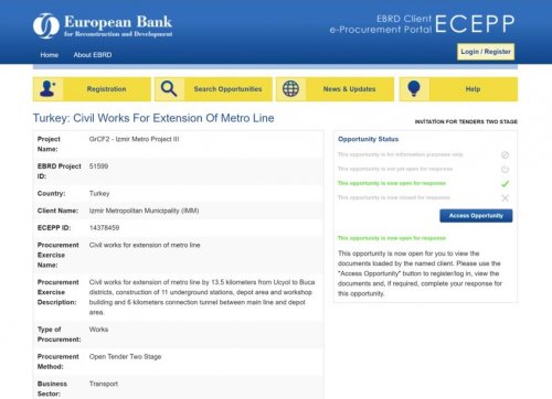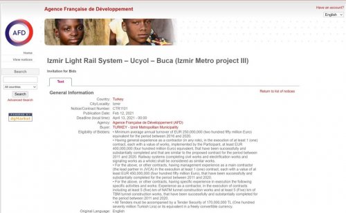 Uygun koşullarla krediİzmir Büyükşehir Belediyesi ile EBRD Aralık 2019’da, Hazine garantisi olmaksızın 80 milyon Euro’luk kredi anlaşması imzalamıştı. Daha sonra bu miktar 125 milyon Euro’ya çıkarıldı. Proje için ayrıca Asya Altyapı Yatırım Bankası (AIIB) 125 milyon Euro, Fransız Kalkınma Ajansı (AFD) 125 milyon Euro, Karadeniz Ticaret ve Kalkınma Bankası (BSTDB) 115 milyon Euro finansman sağlama taahhüdünde bulundu. Bu kuruluşlarla da yetkilendirme mektuplarının imzalanması aşamasına gelindi. Böylece Hazine garantisi olmaksızın sağlanan dış kredi toplamı 490 milyon Euro’yu buldu. EBRD yetki mektubu kapsamında proje finansmanının faiz oranı, altı aylık EURIBOR + yüzde 3.20; vadesi ise dört yıl anapara geri ödemesiz dönem dahil toplam 12 yıl olarak belirlendi. Diğer finansman kuruluşları ile yapılan görüşmelerde de faiz oranı ve vadenin EBRD göstergeleri ile benzer olması öngörülüyor.
