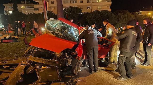 savruldu. Direğe çarpan otomobilde ciddi hasar meydana gelirken, içindeki 3